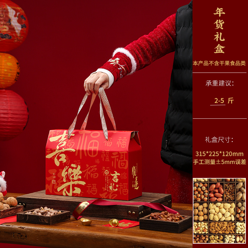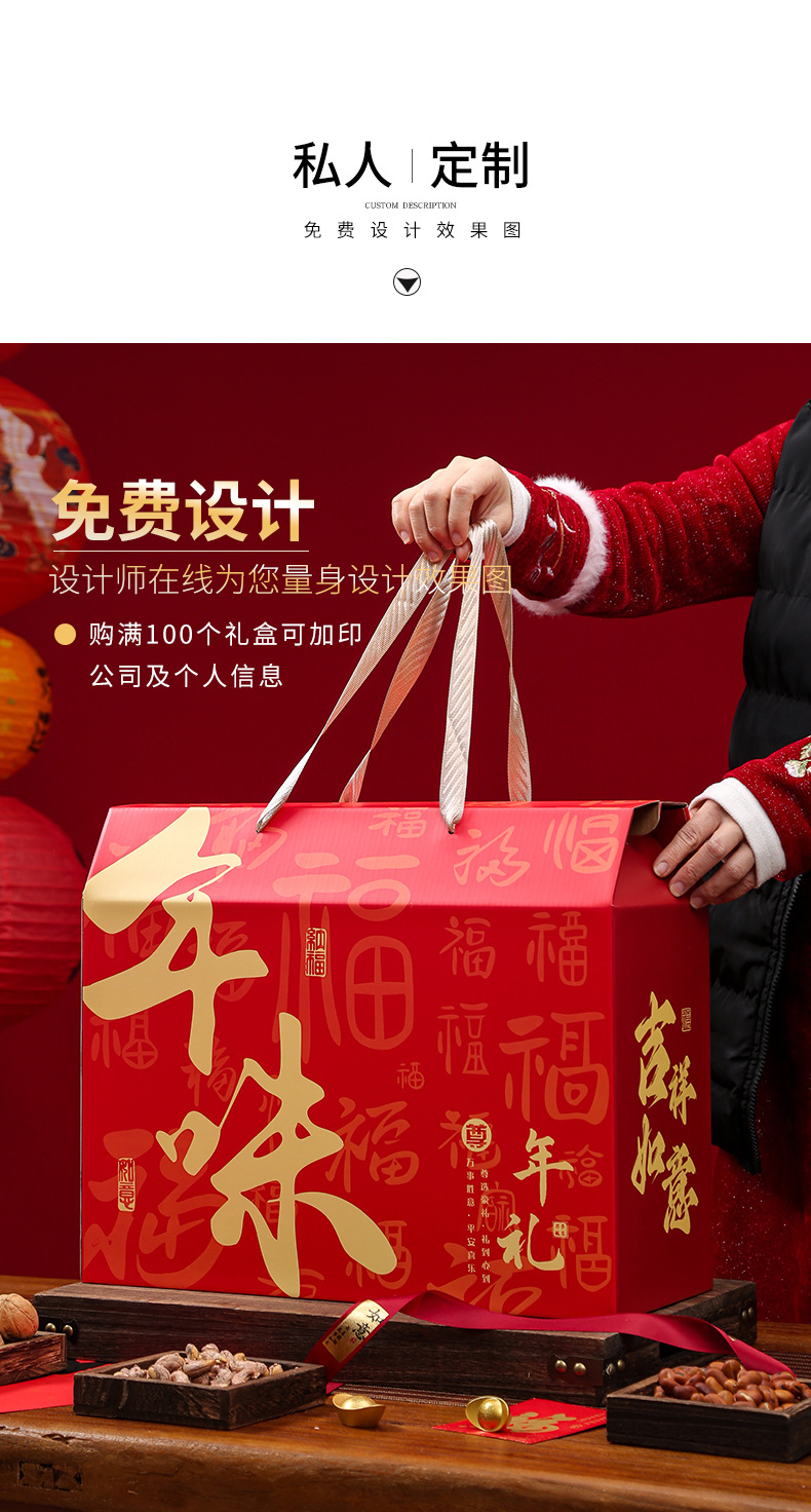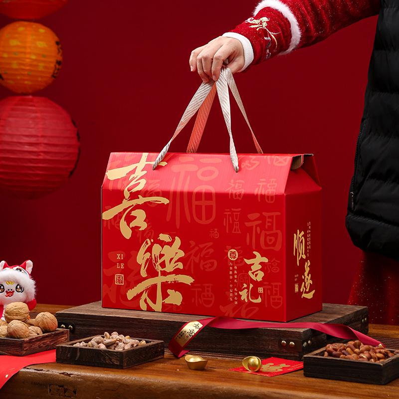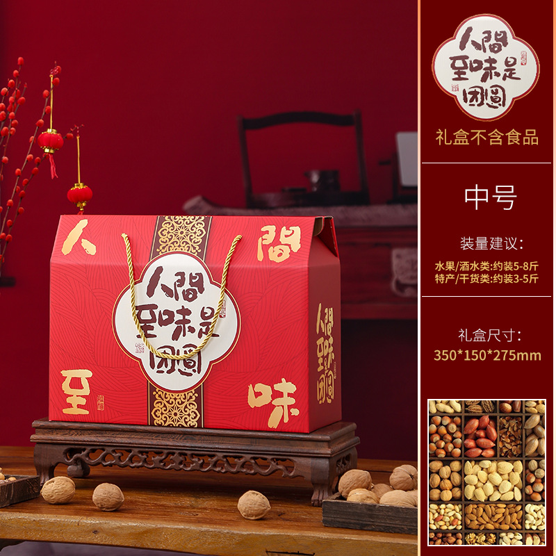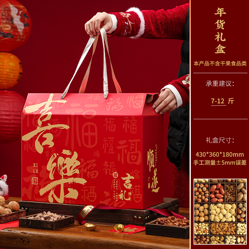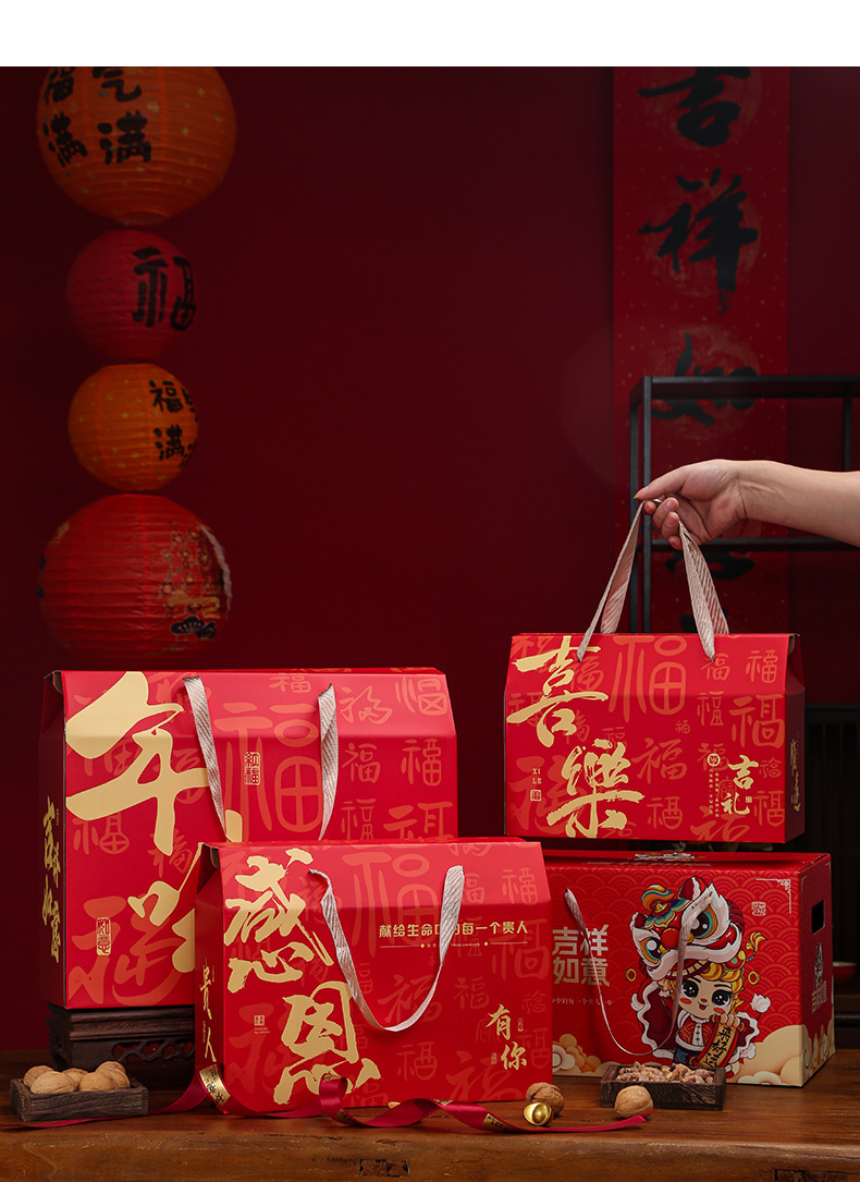 Новогодняя универсальная подарочная коробка премиум-класса с золотым тиснением, новогодняя упаковка для кондитерских изделий и ветчины с красной китайской печатью, пустая коробка в наличии.
