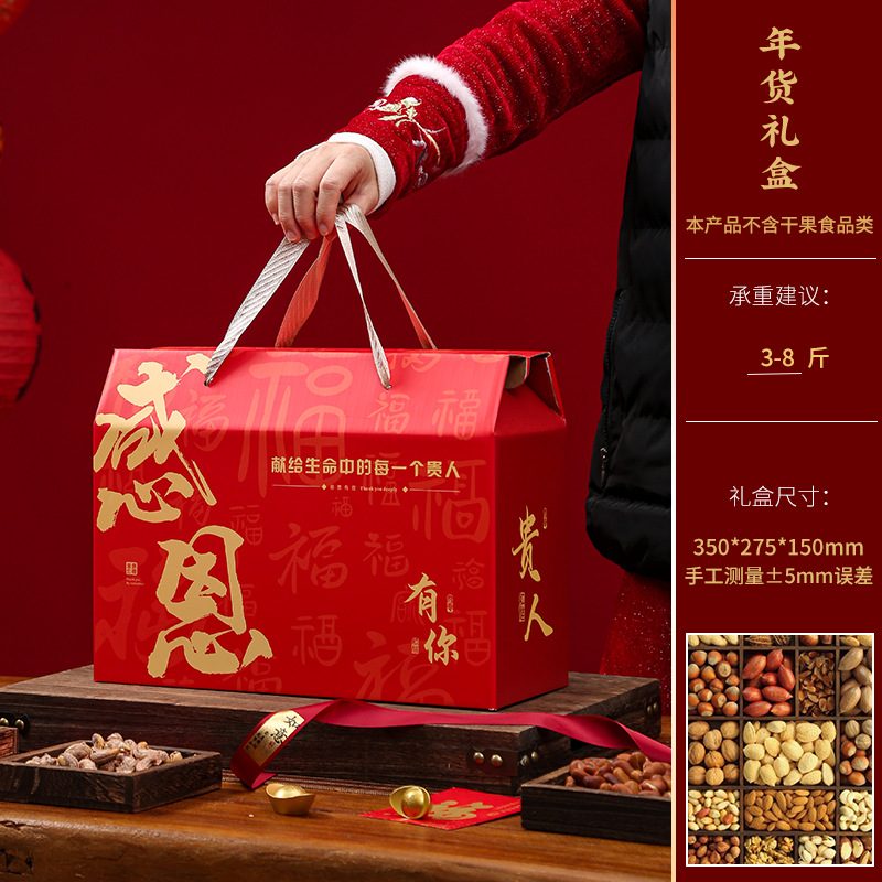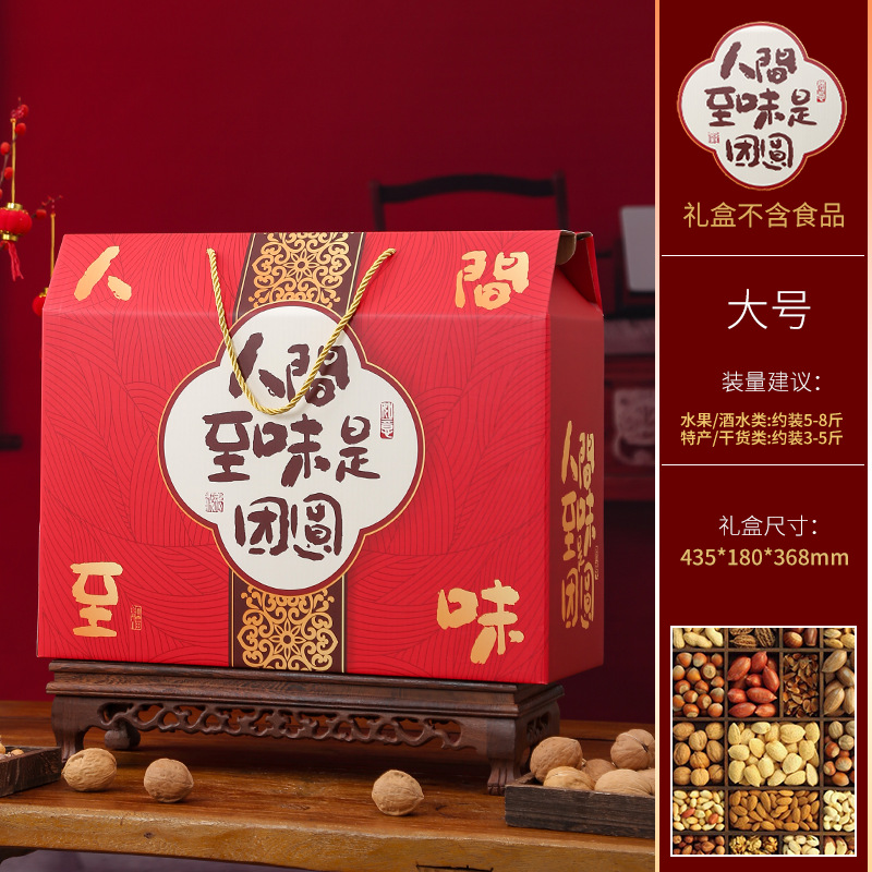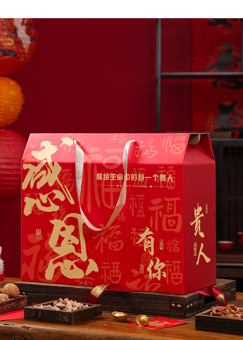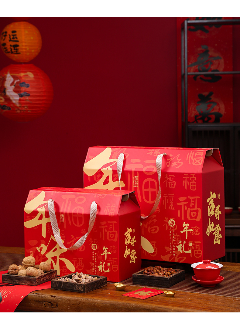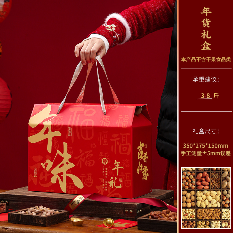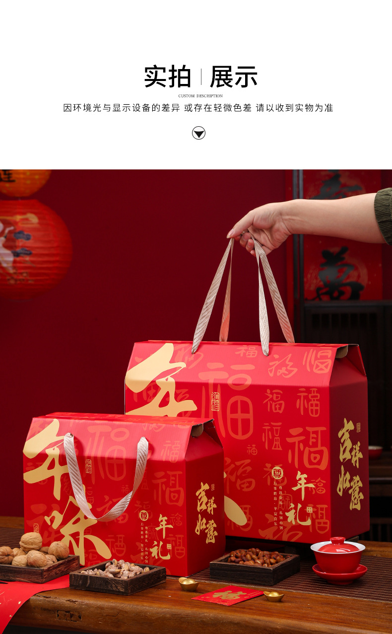 Новогодняя универсальная подарочная коробка премиум-класса с золотым тиснением, новогодняя упаковка для кондитерских изделий и ветчины с красной китайской печатью, пустая коробка в наличии.