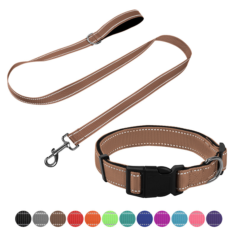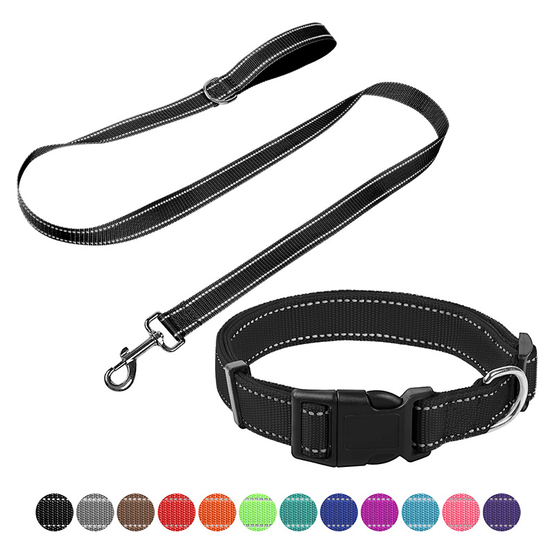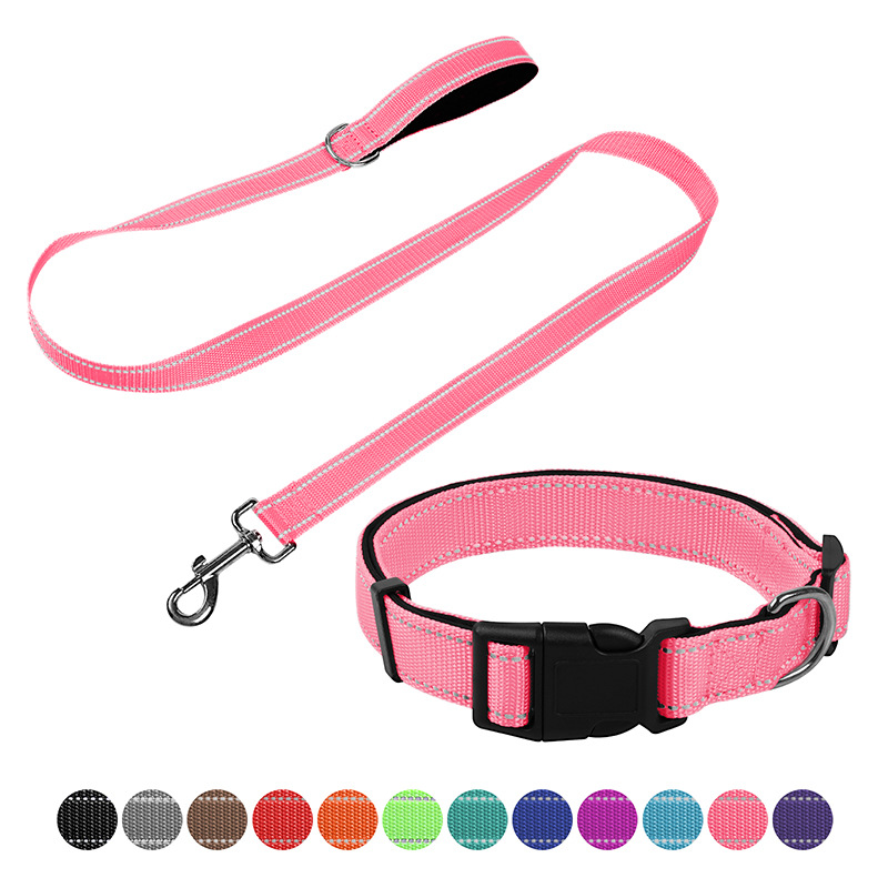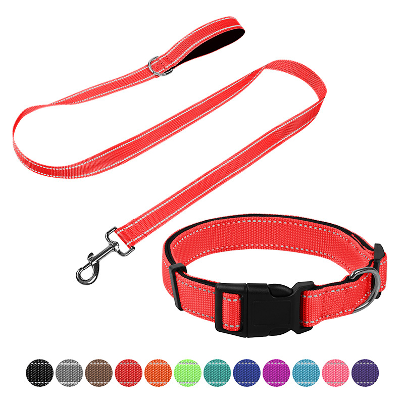 Набор для собак: нейлоновый поводок, ошейник из нейлоновой ленты, регулируемый, для дома и улицы, с возможностью индивидуального оформления.