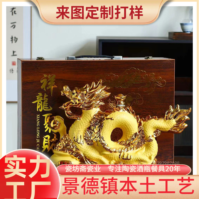 Зодиакальный дракон керамическая винная бутылка 3 кг 5 кг ремесленный винный шкаф украшения матовое золото пустые винные банки винные горшки оптом