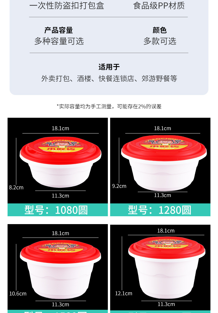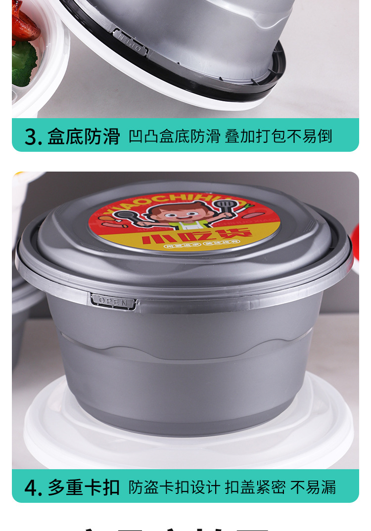 Одноразовая упаковка для кейтеринга, ланч-бокс с защитой от вскрытия, круглая миска, контейнер для еды на вынос, герметичная миска из пищевого полипропилена