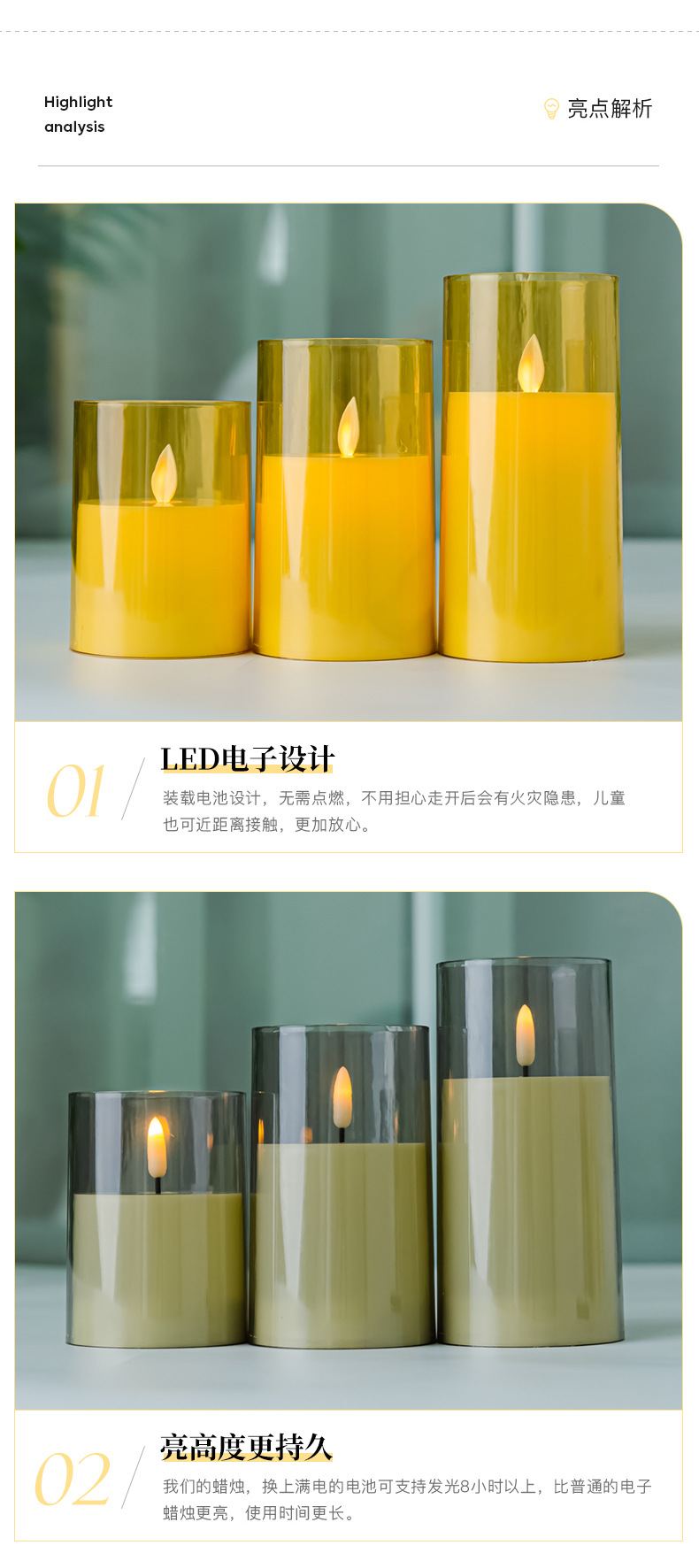 Пластиковая акриловая свеча, праздничная свеча, имитация атмосферы, свеча, Amazon, светодиодная электронная свеча