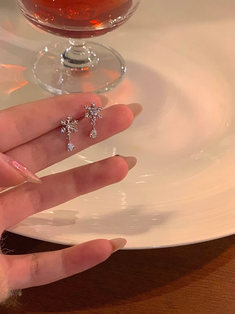 Изысканные нежные сверкающие циркониевые снежинки серьги женские осенние и зимние премикие серьги гарнир новый 2024