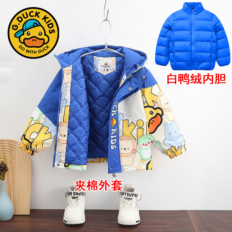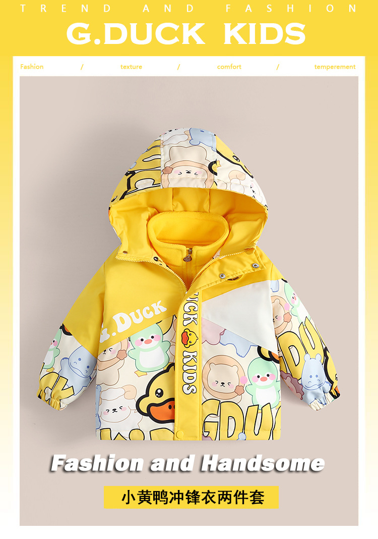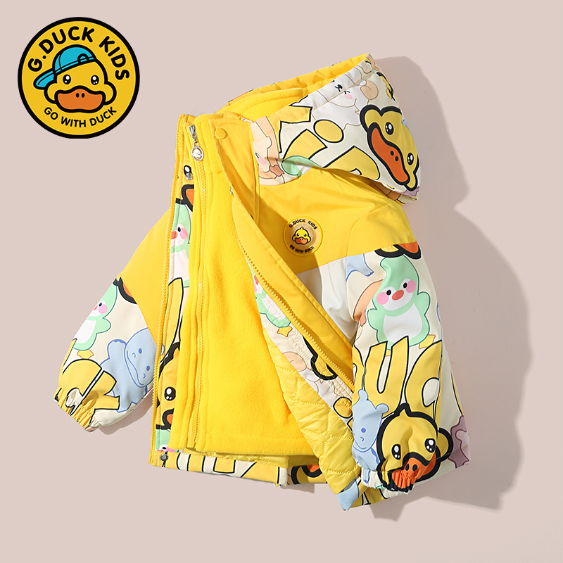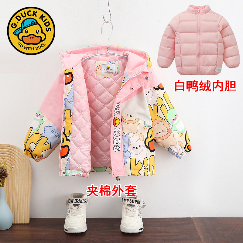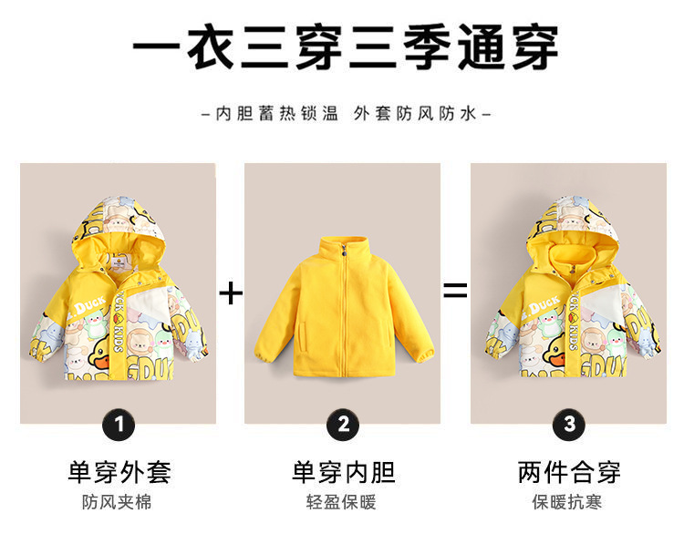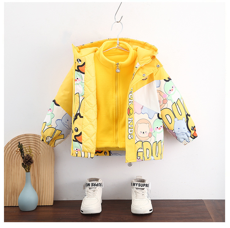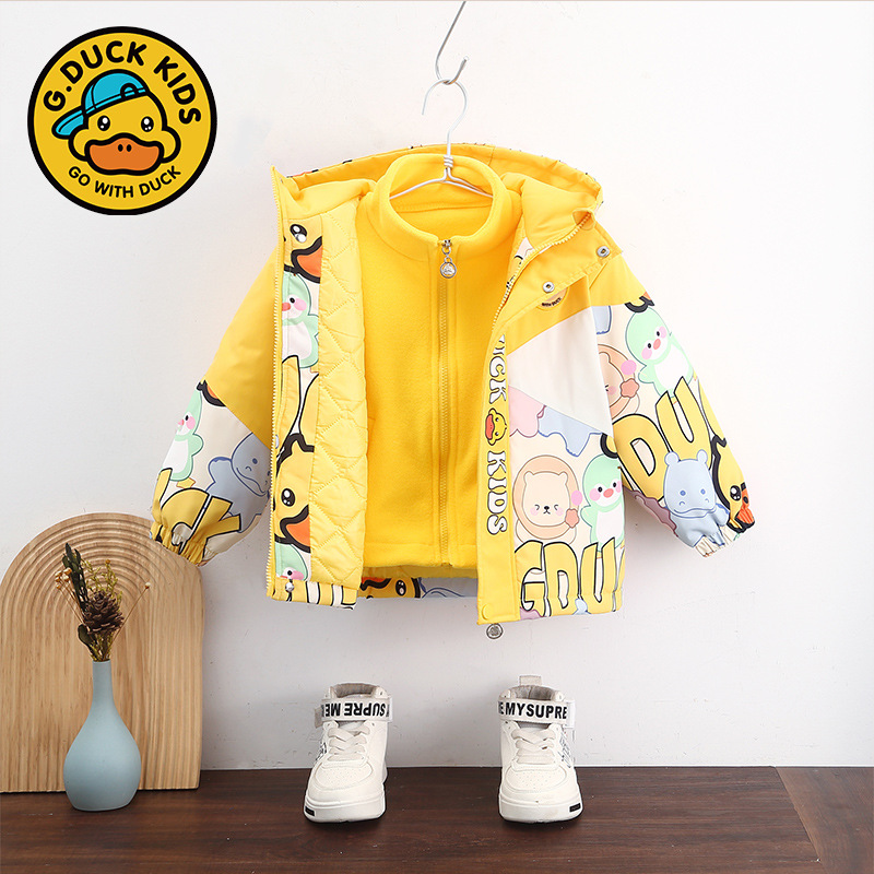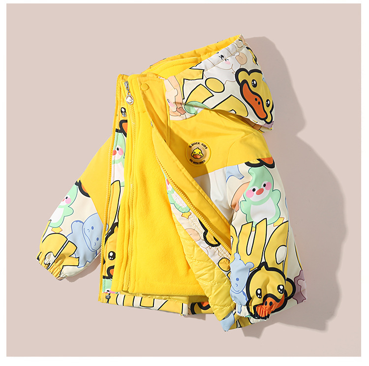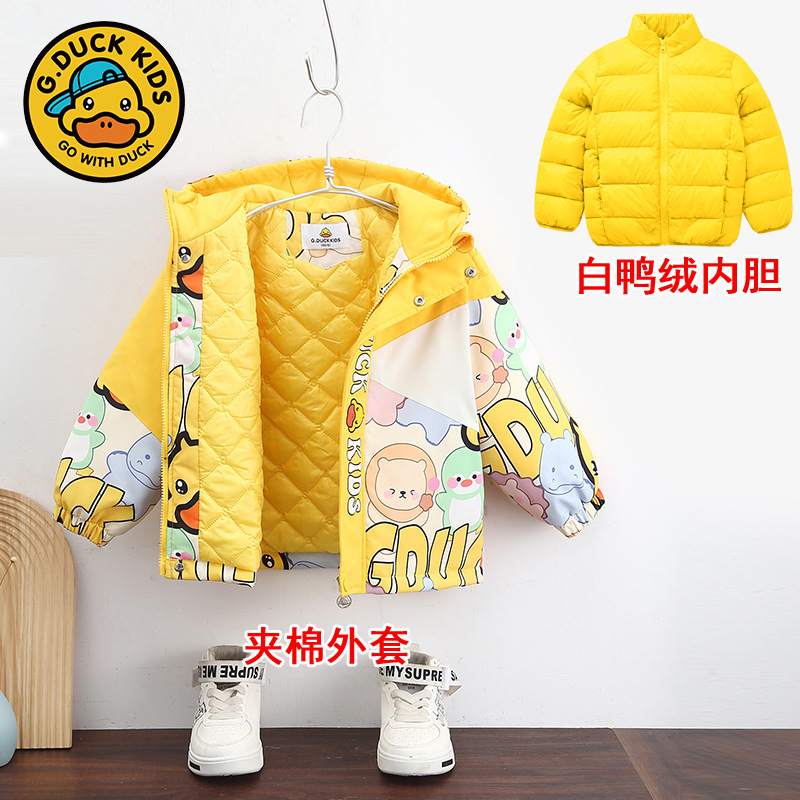 Подлинная желтая утка пуховик для детей 2024 набор из двух частей для мальчиков и девочек три в одном ветрозащитное теплое пальто