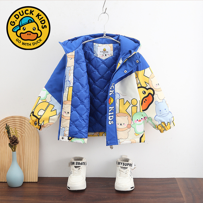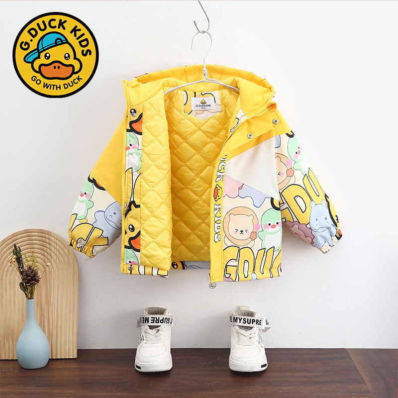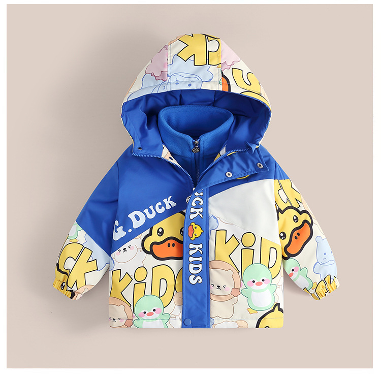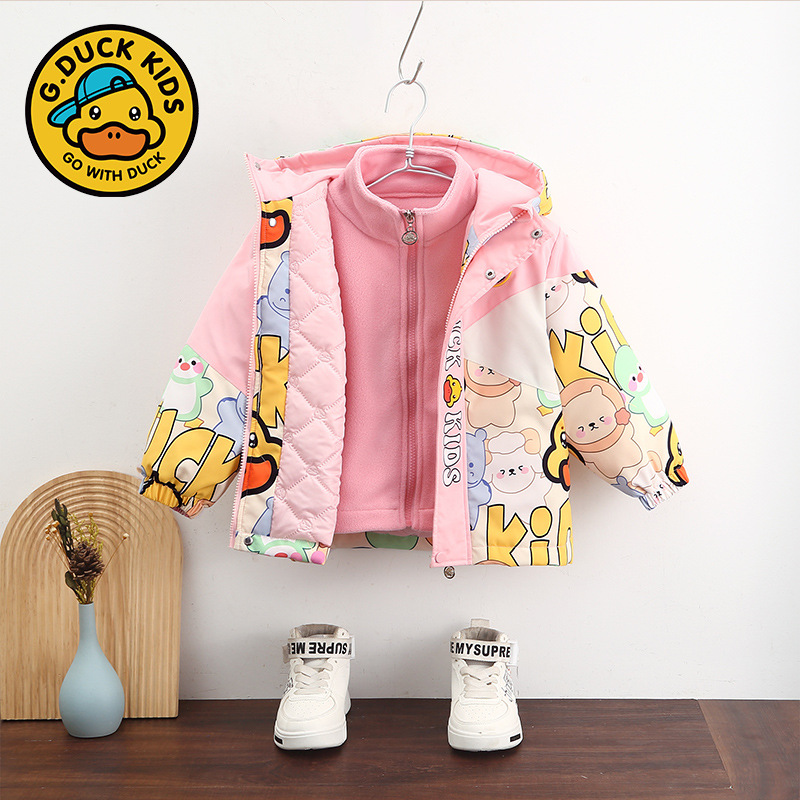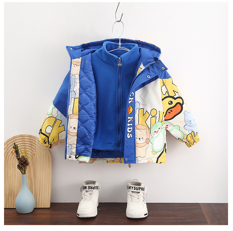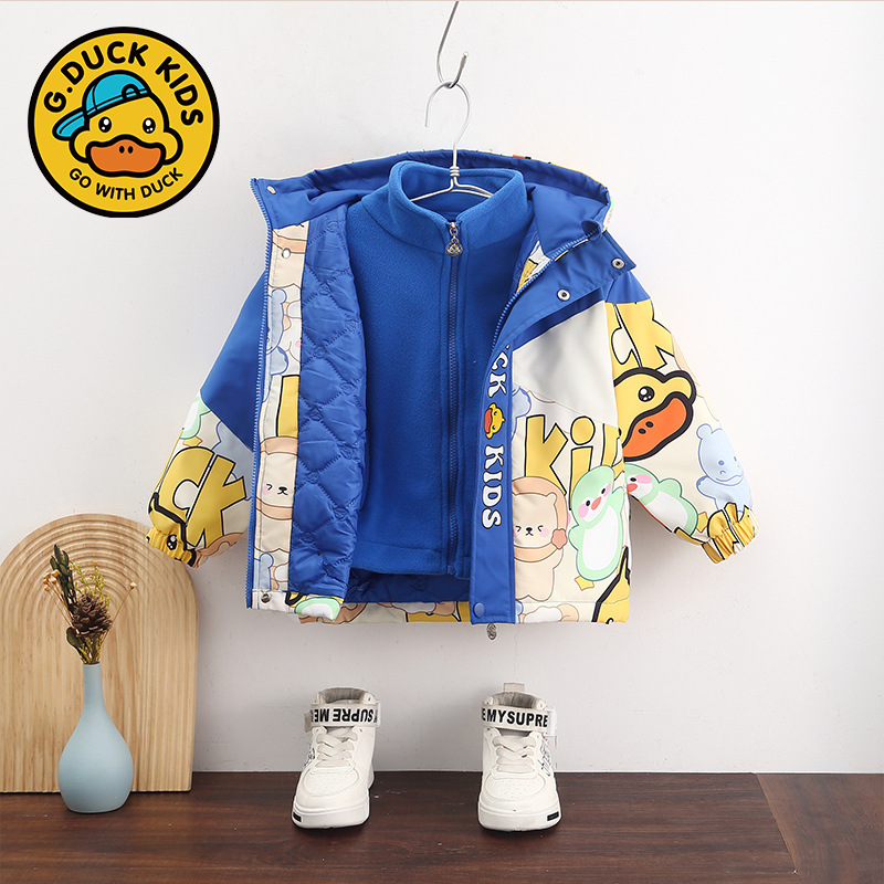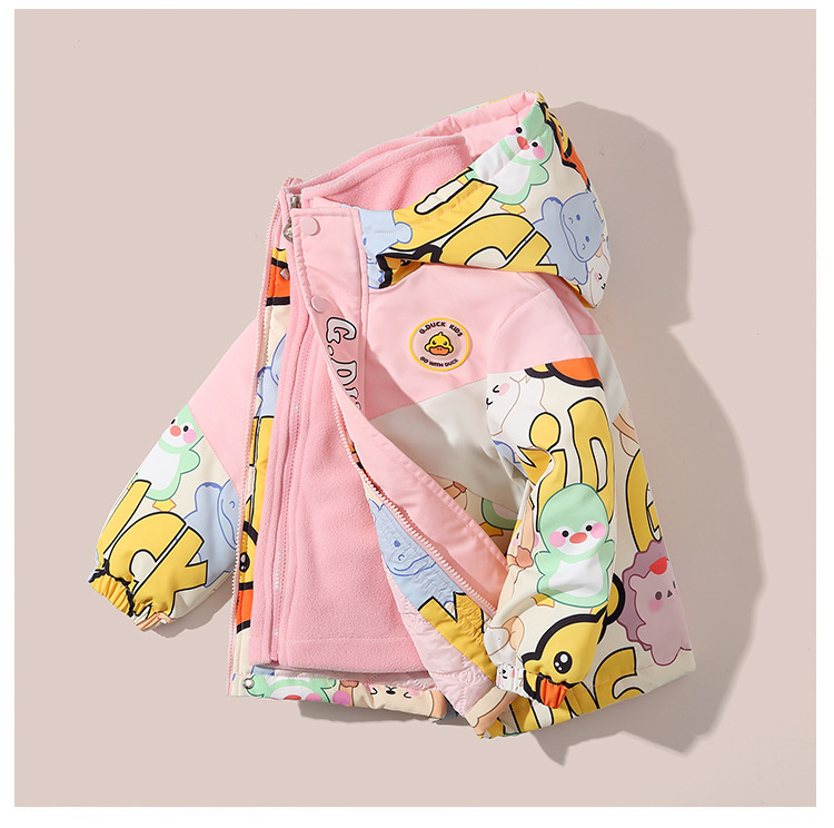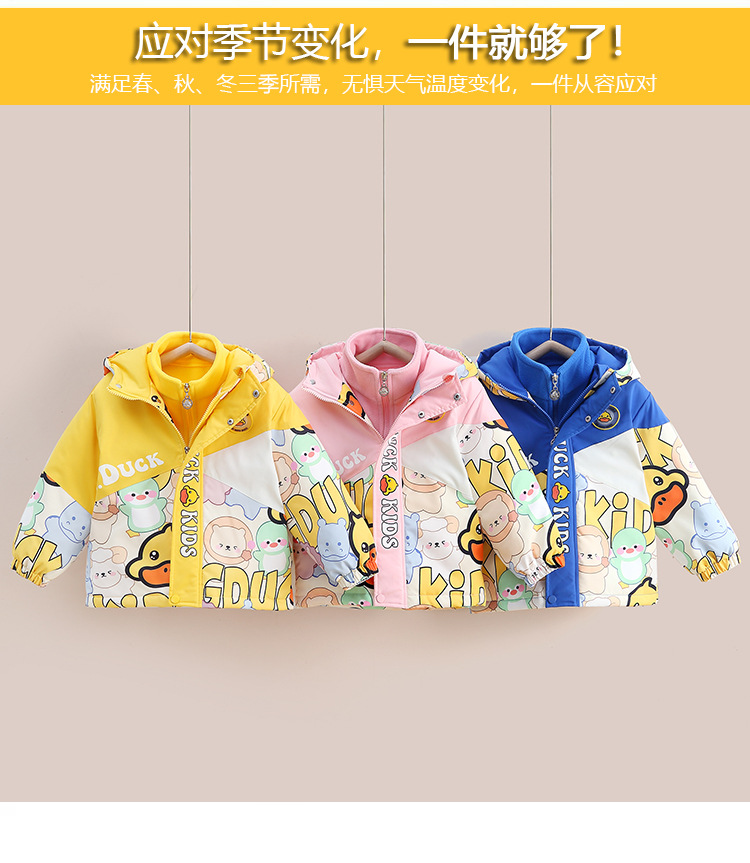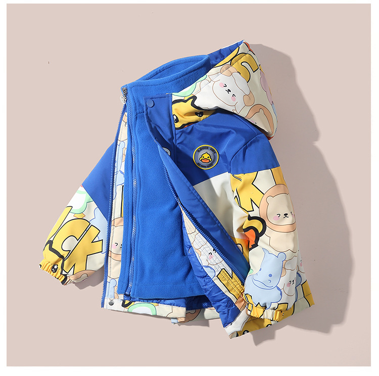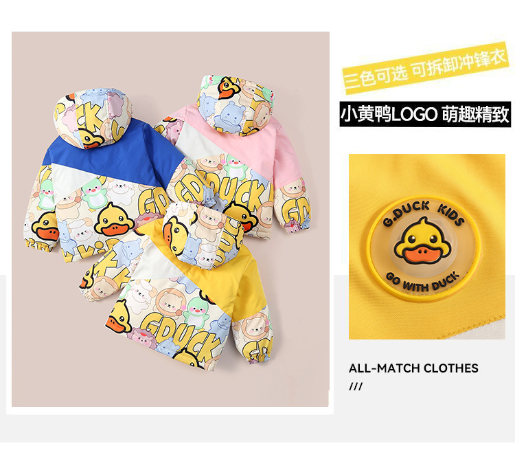 Подлинная желтая утка пуховик для детей 2024 набор из двух частей для мальчиков и девочек три в одном ветрозащитное теплое пальто