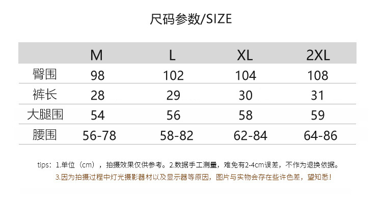 | 尺码 | 腰围(CM) | 臀围(CM) |