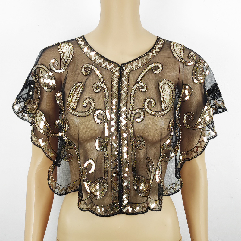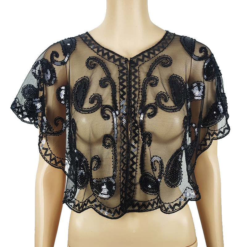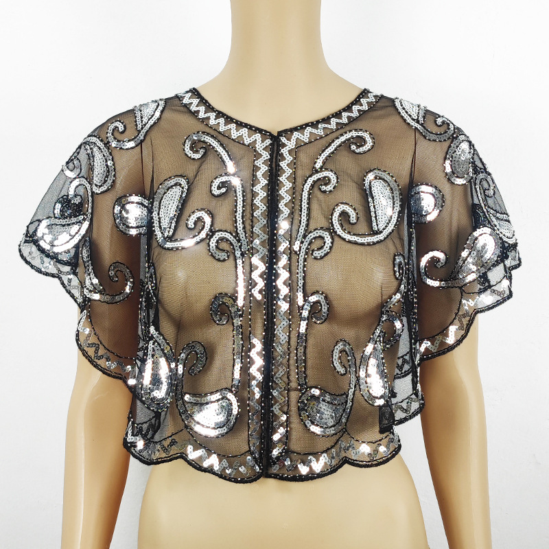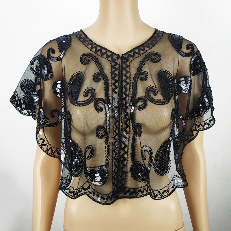 Цельный трансграничный шаль с блестками кружева тонкое платье Внешняя сетка с коротким бисером Мода все соответствующие европейский и американский стиль