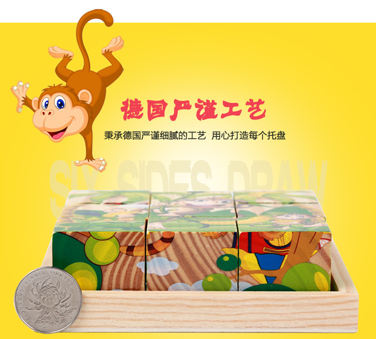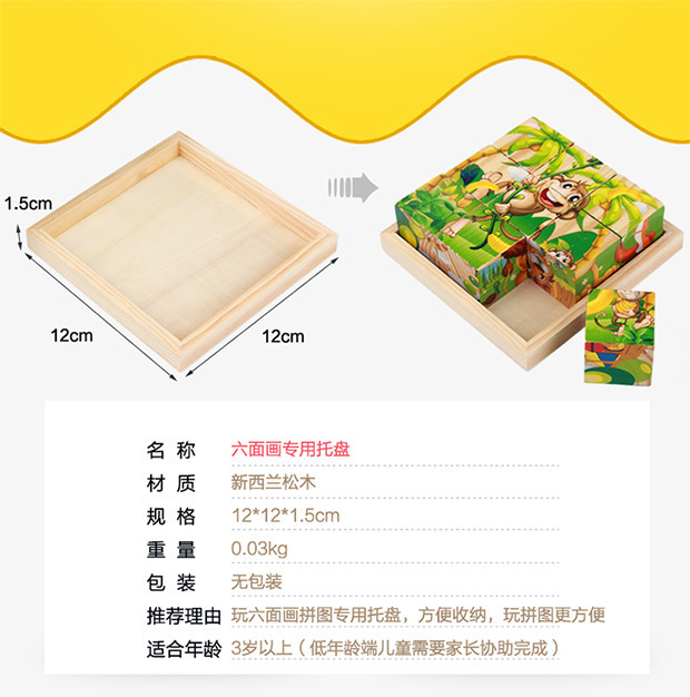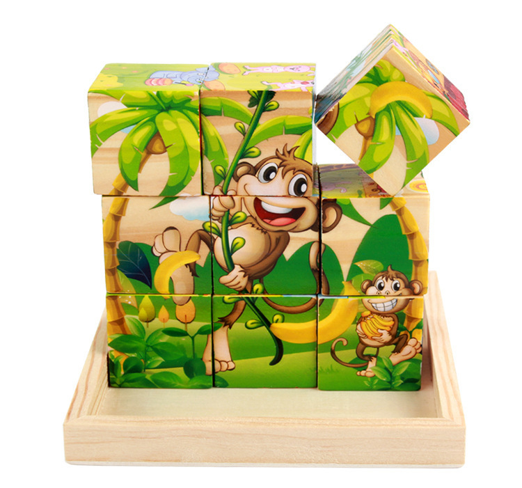 Детский 3D пазл, специальный деревянный поднос, 9 предметов, шестигранный пазл, деревянное шасси, прямые продажи с завода