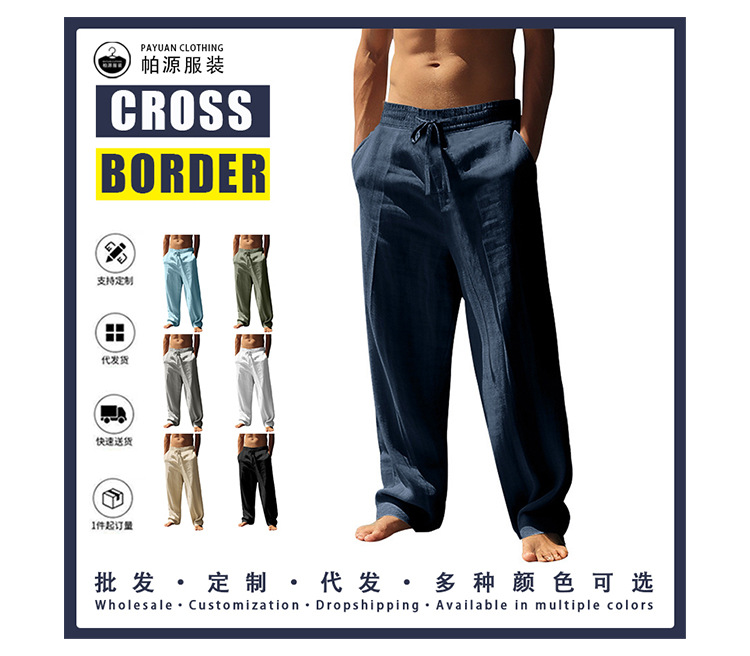 2024 независимая станция европейские и американские весенне-летние новые модные мужские хип-хоп Дышащие льняные свободные повседневные спортивные брюки