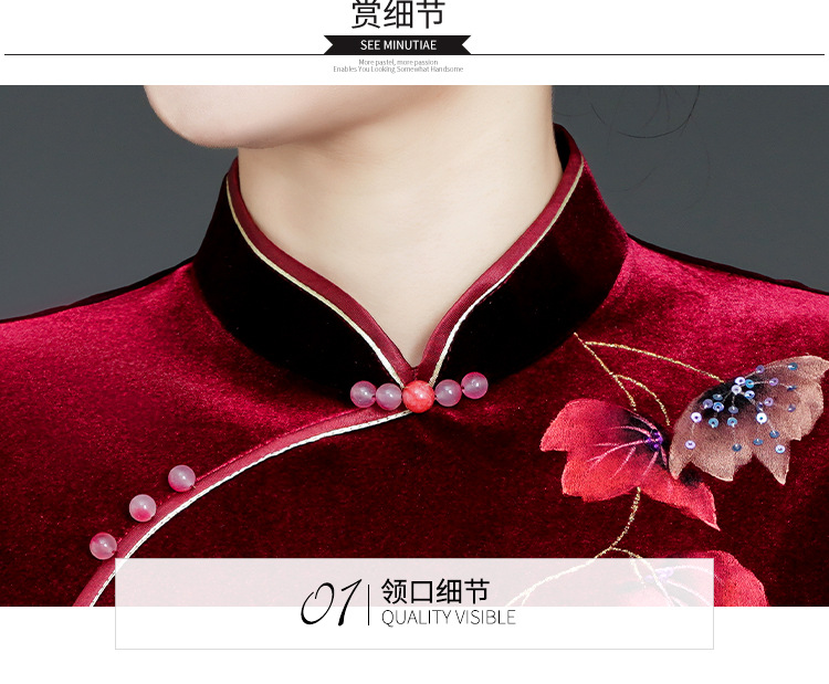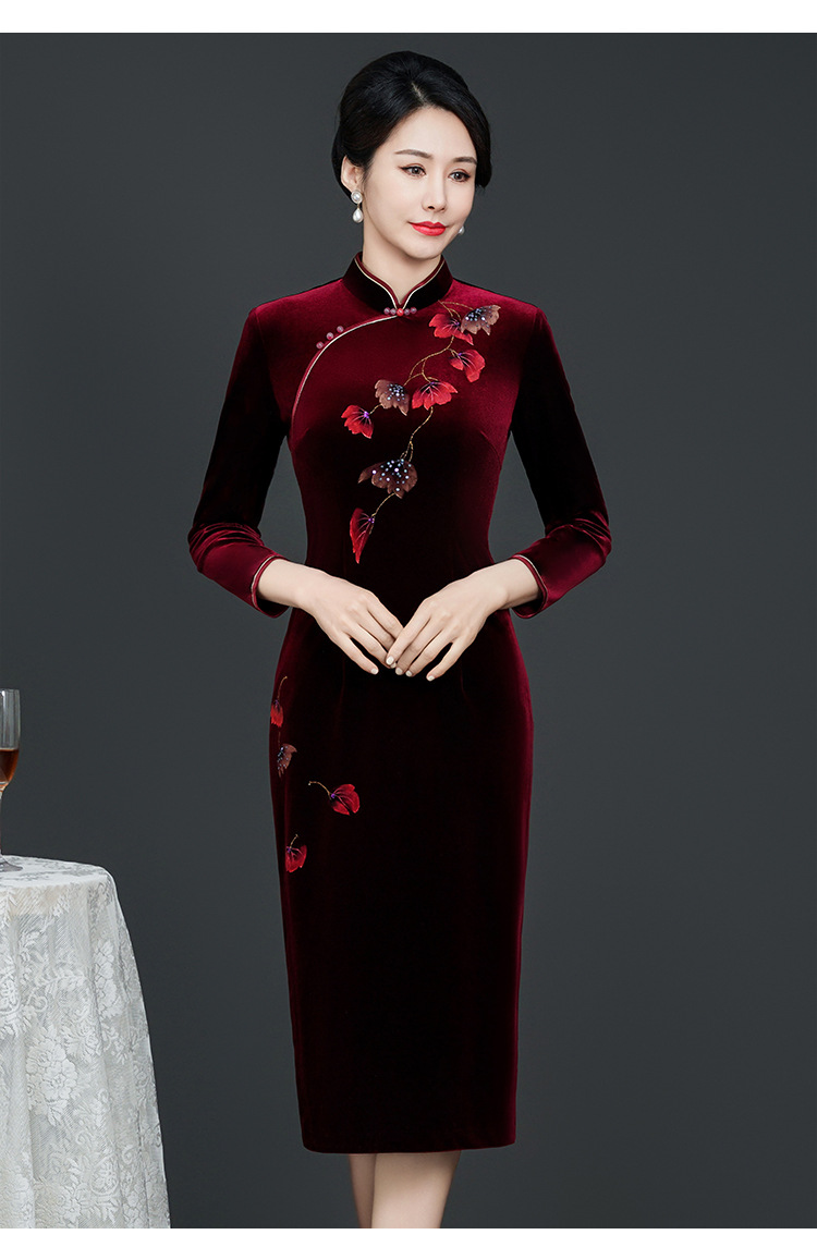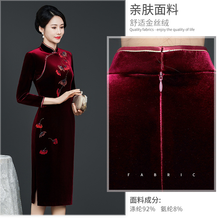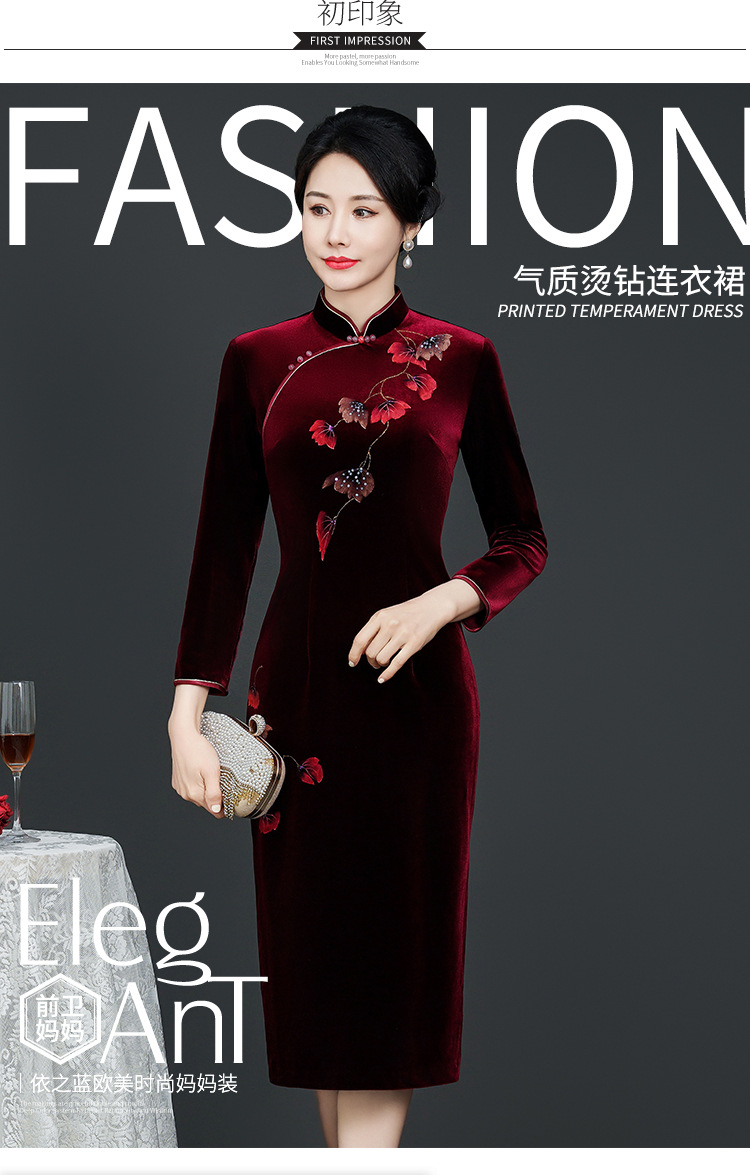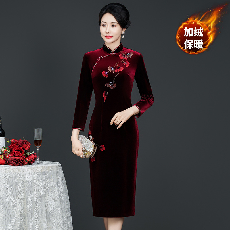 Мама среднего возраста толстый бархатный теплый чонсам осенью и зимой длинное благородное женское золотое бархатное платье