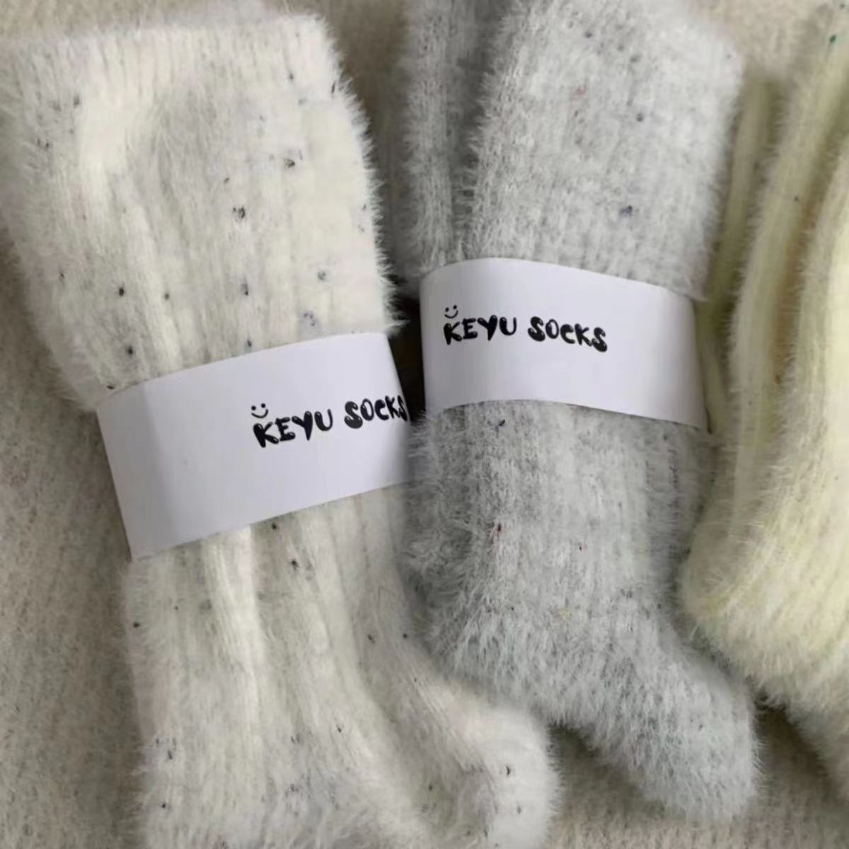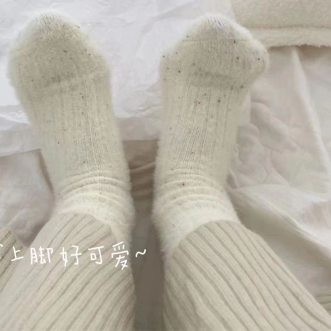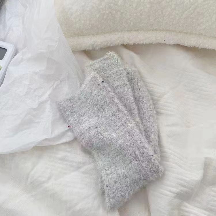Норковые бархатные носки, женские зимние теплые толстые носки до середины икры на флисовой подкладке, однотонные носки из пушистой пряжи в горошек, толстые носки до середины икры