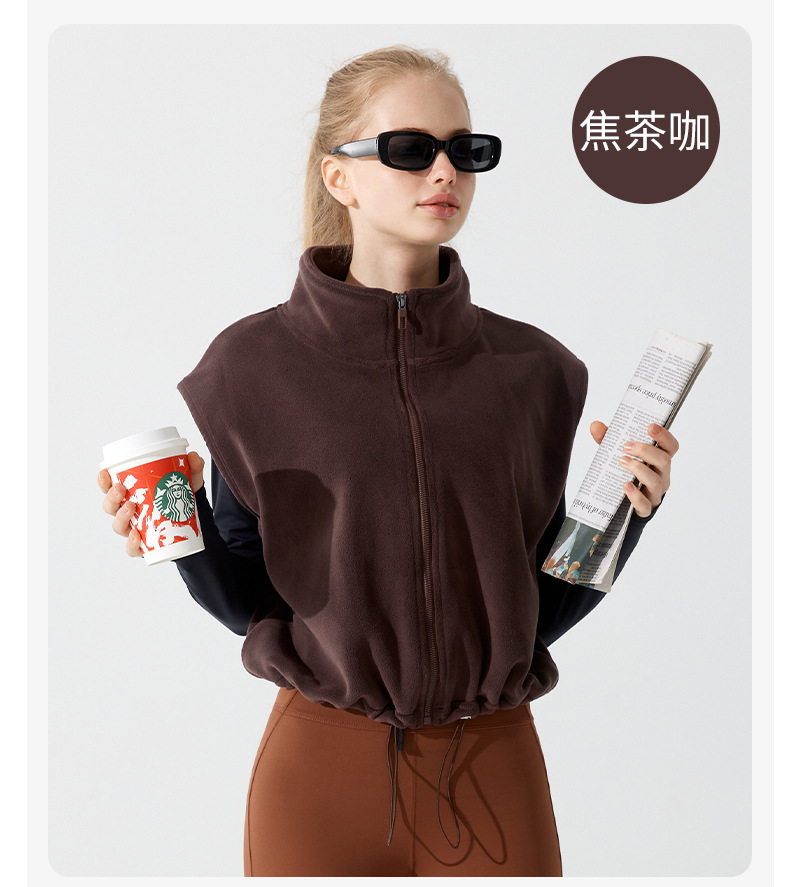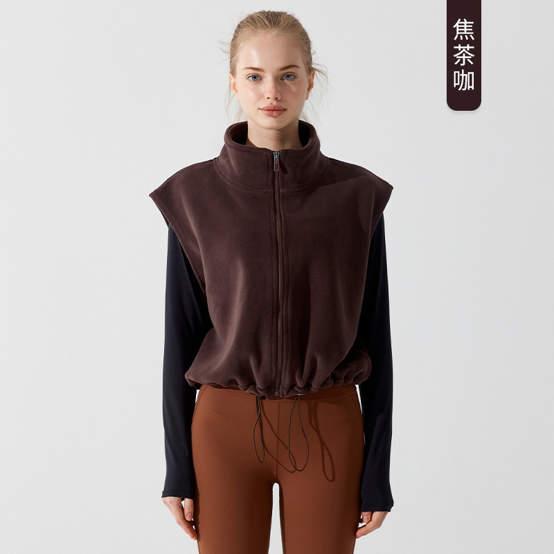 Оли бархатный воротник на молнии жилет женский осенний и зимний спорт теплый отдых куртка плюс бархатный без рукавов фитнес-жилет