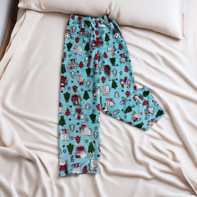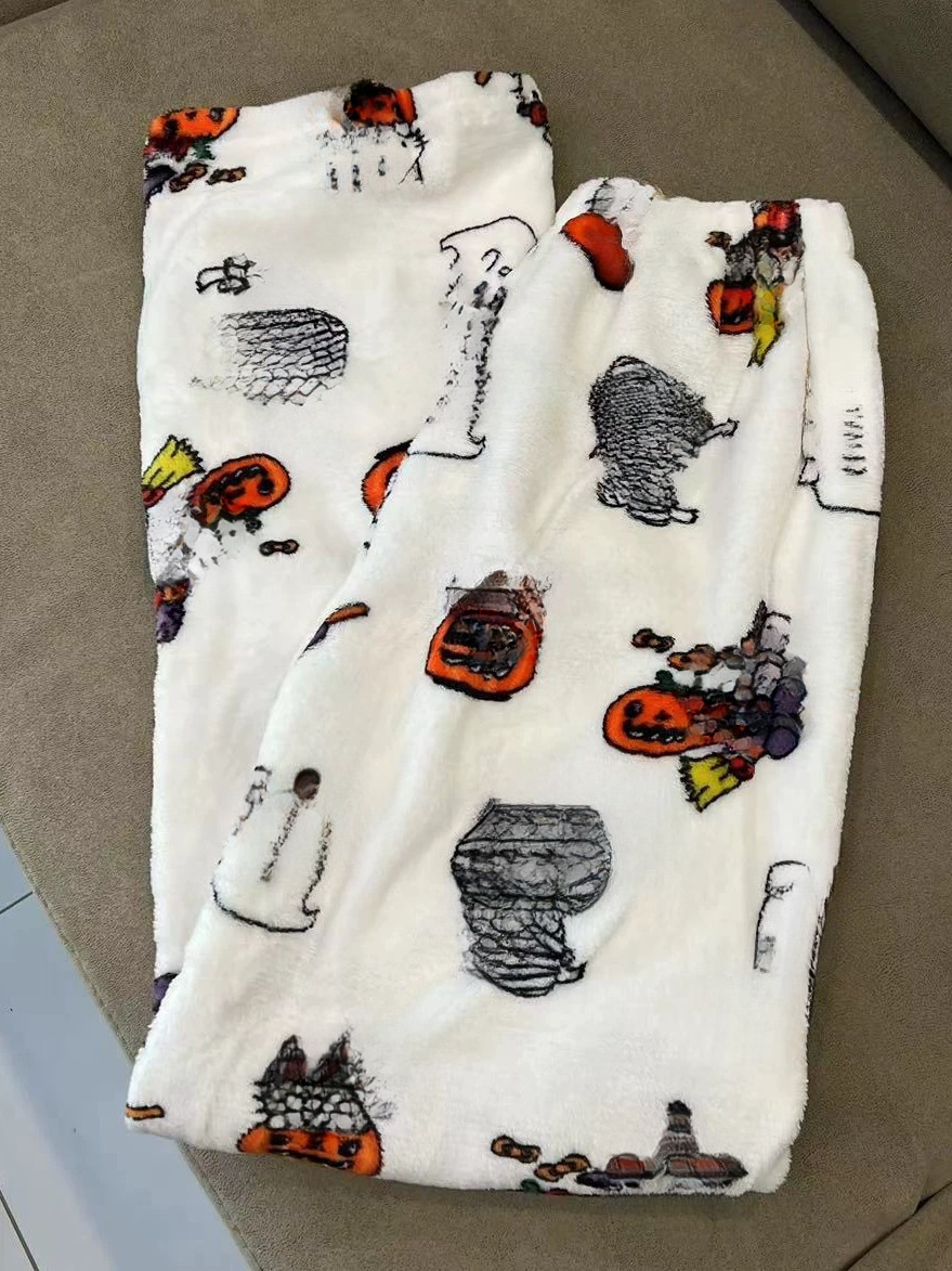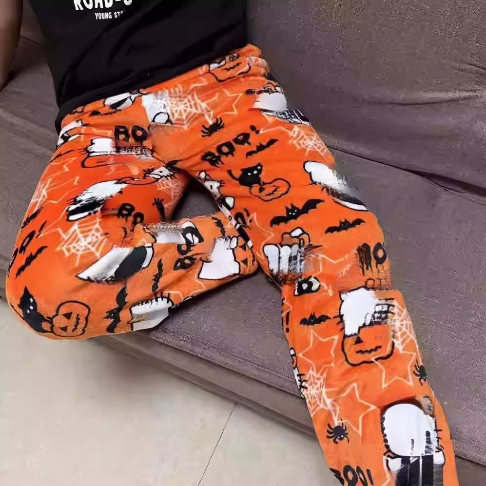 Женские пижамные штаны с изображением кота Китти на Хэллоуин, теплые флисовые штаны для дома на осень и зиму, модные повседневные пижамные штаны с принтом котенка.