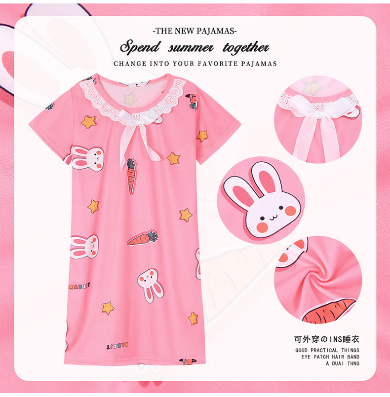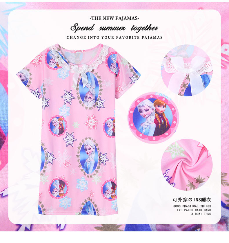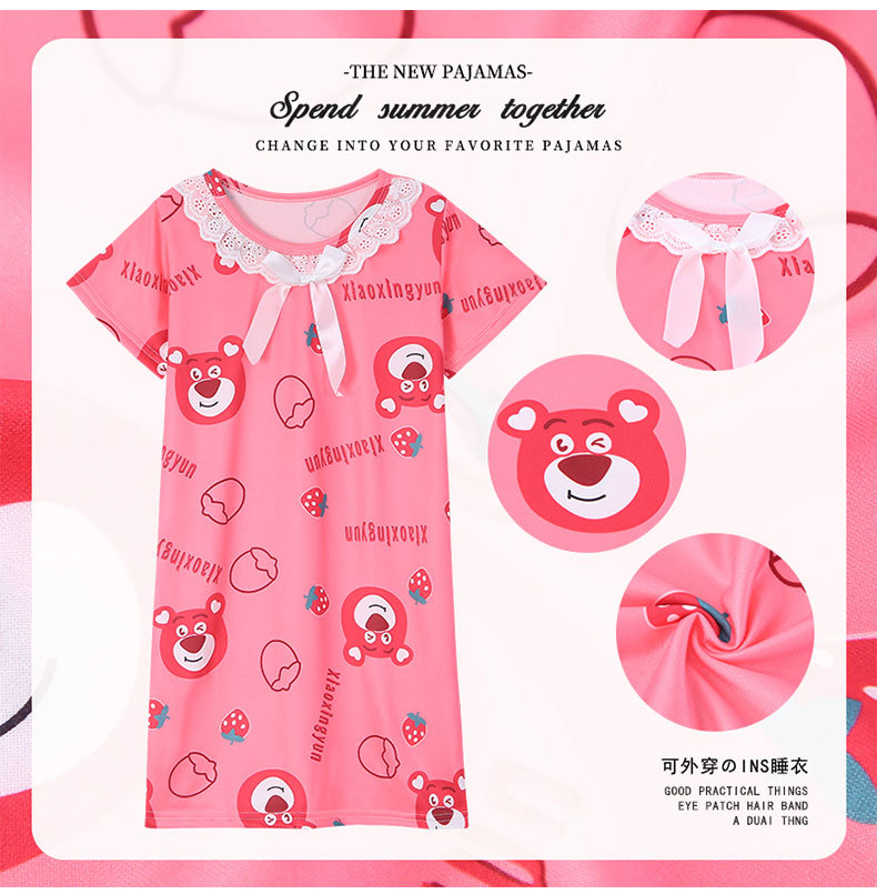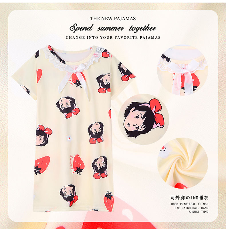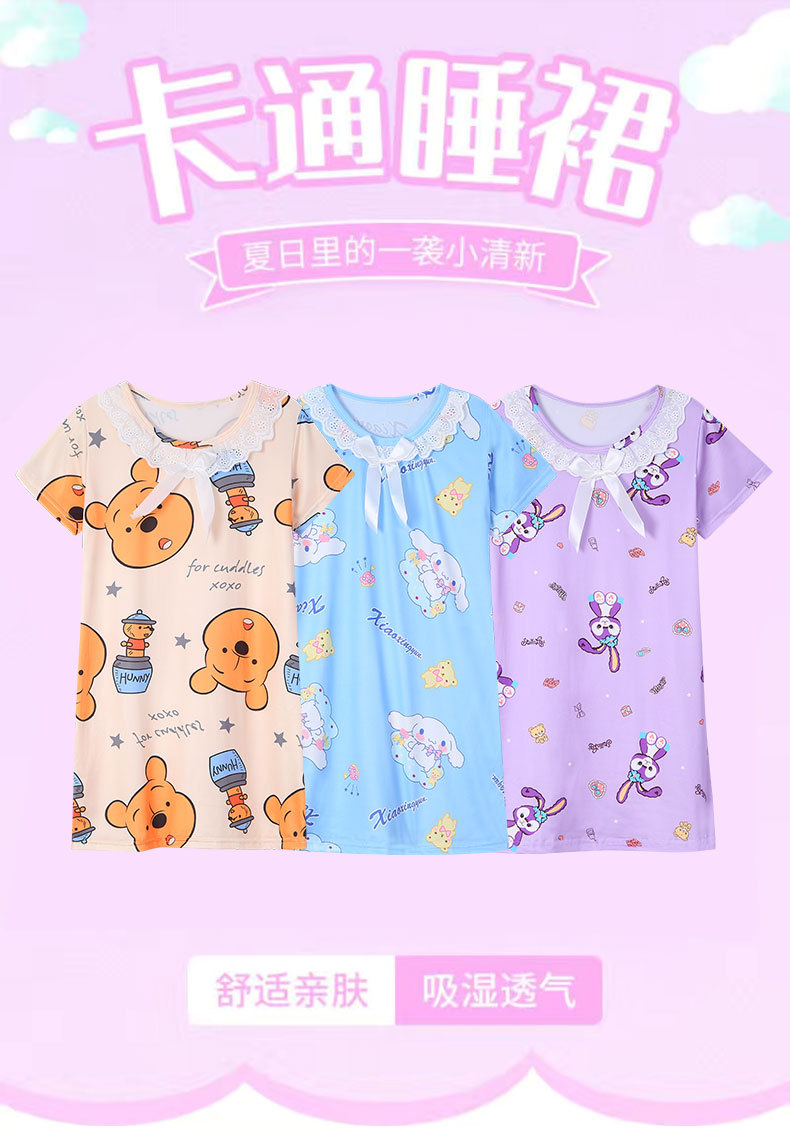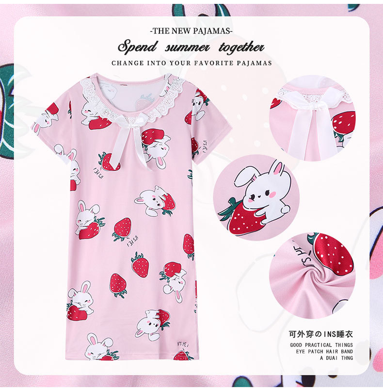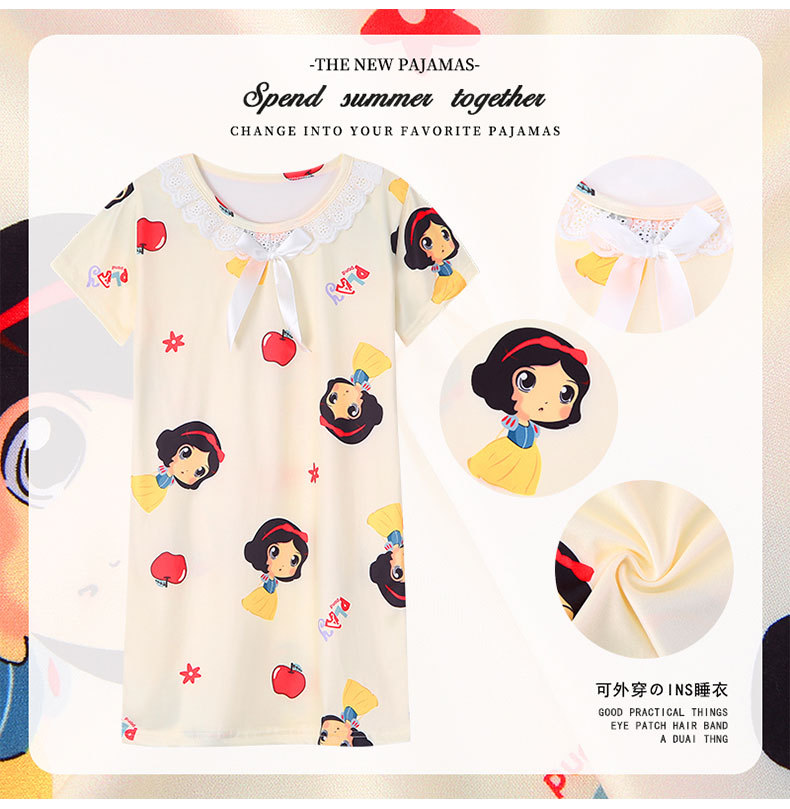 2024 ночная рубашка для девочек Летняя с короткими рукавами для средних и больших детей Летняя тонкая мультяшная Маленькая девочка принцесса детская пижама верхняя одежда