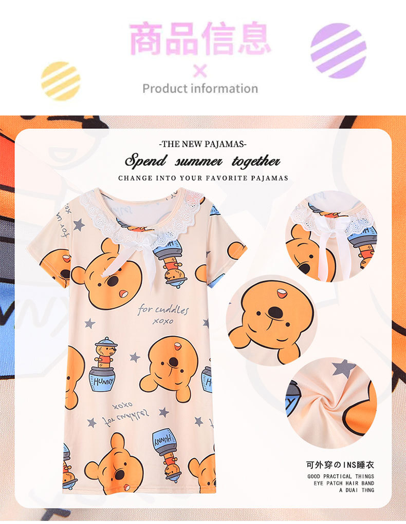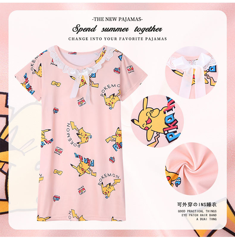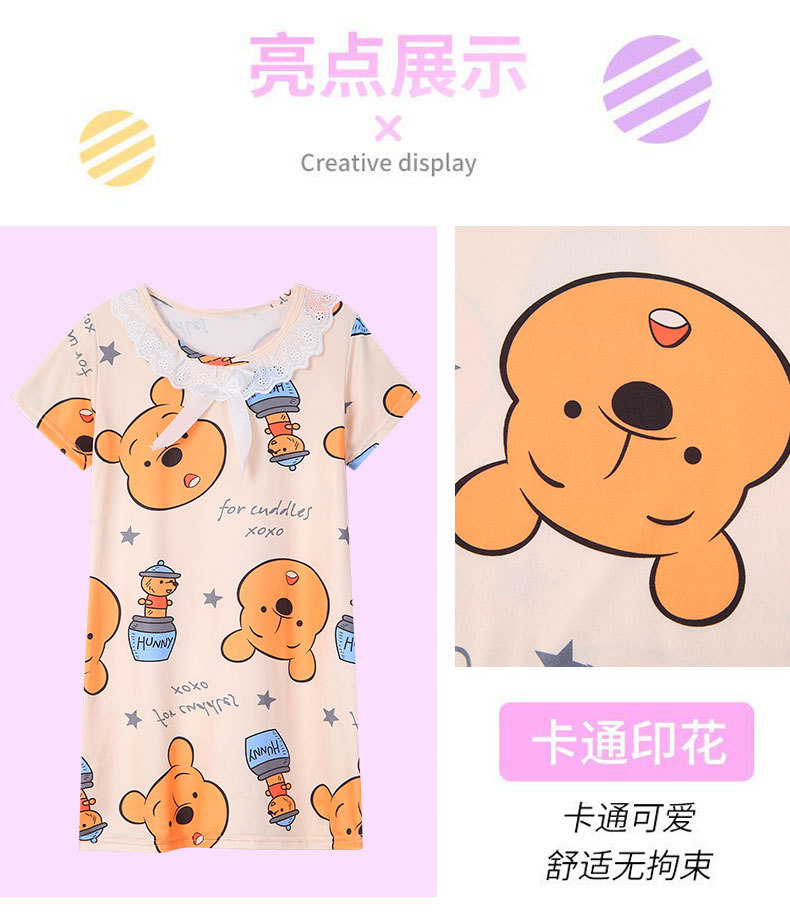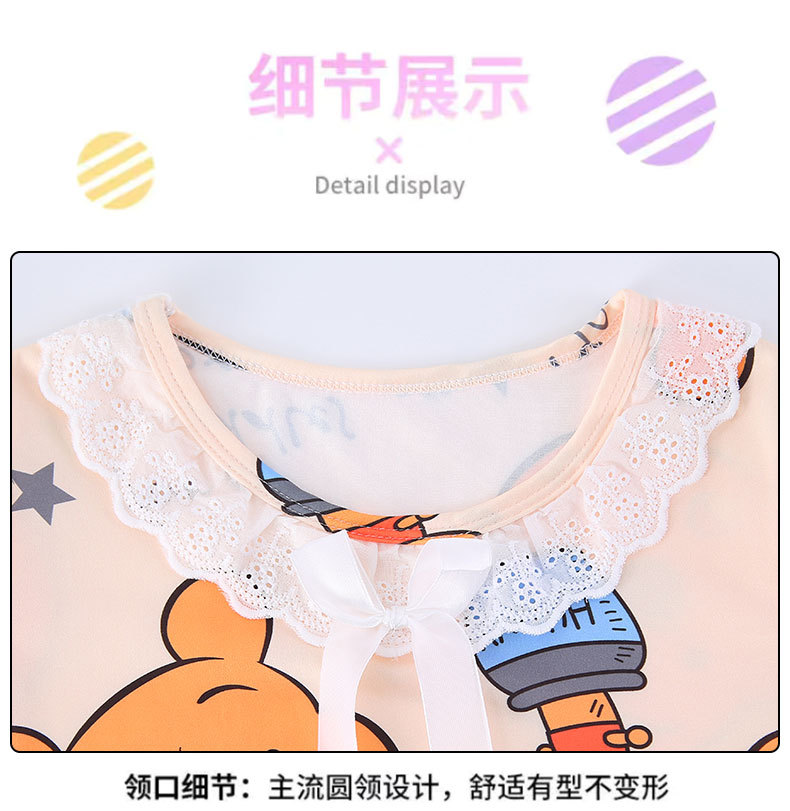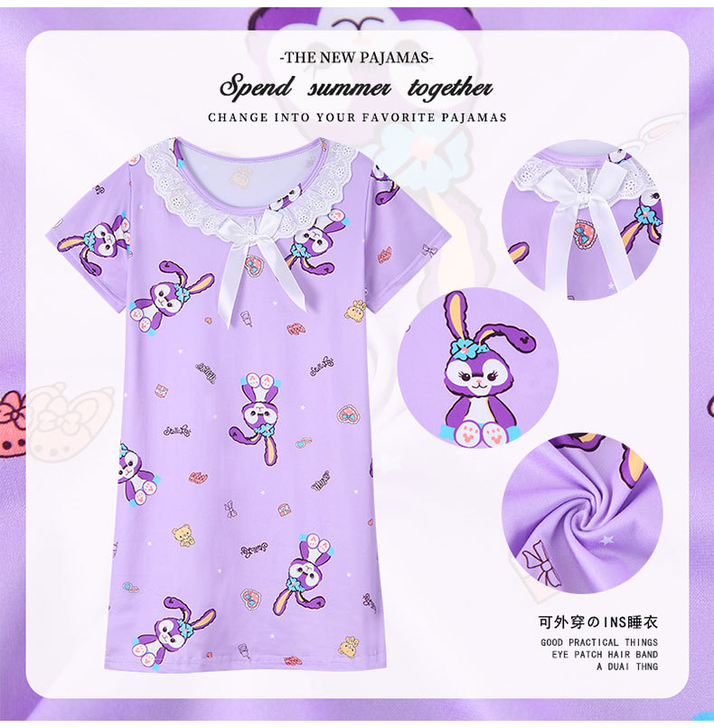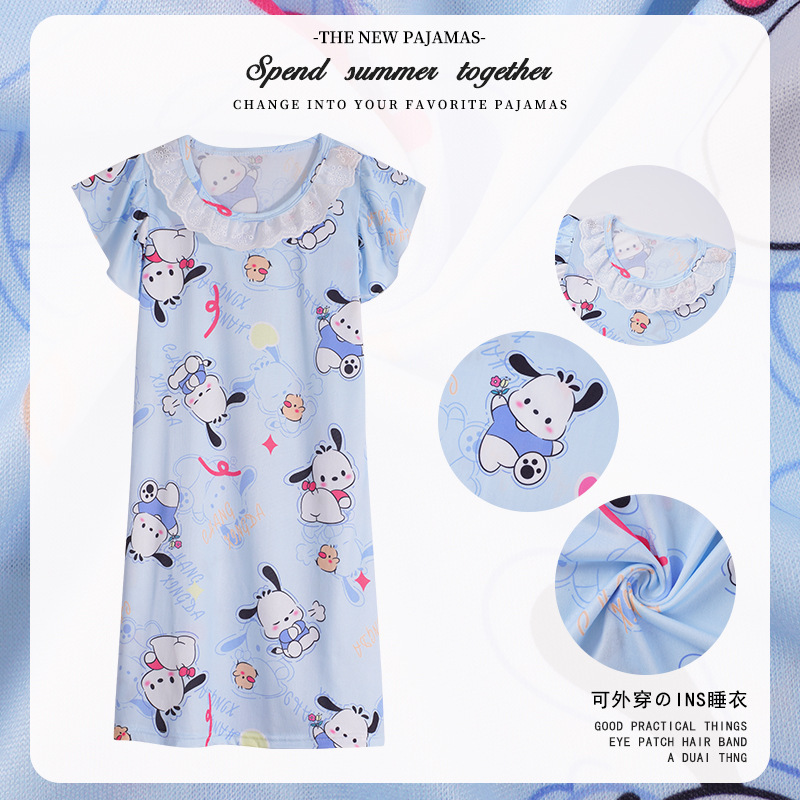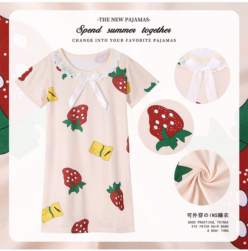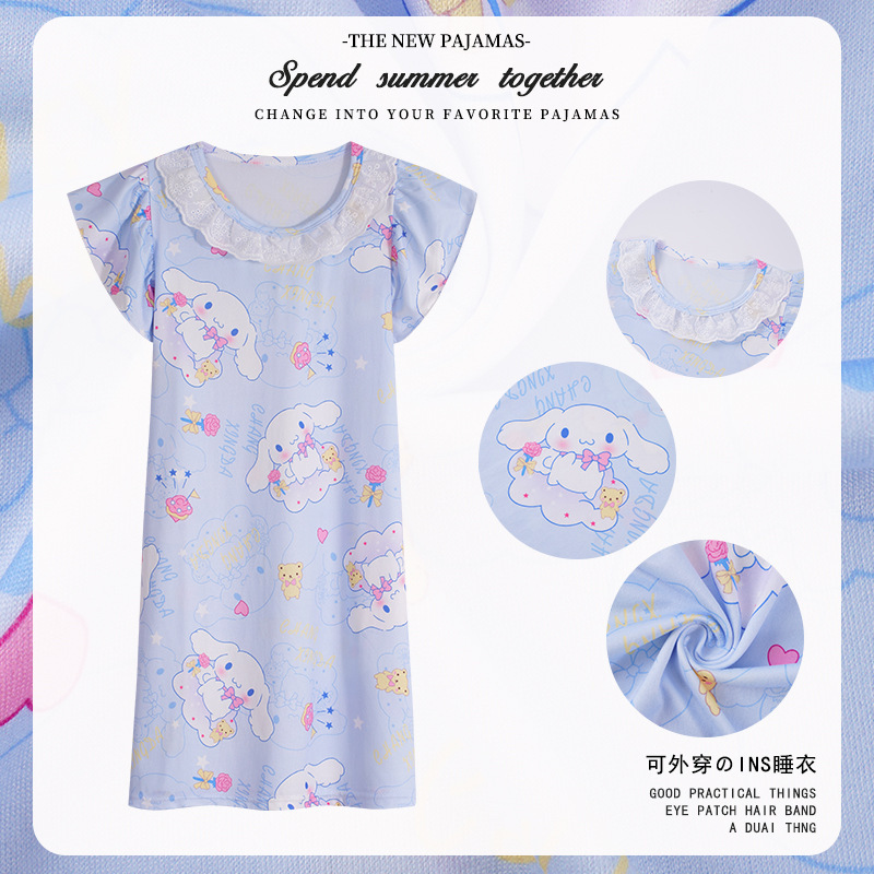 2024 ночная рубашка для девочек Летняя с короткими рукавами для средних и больших детей Летняя тонкая мультяшная Маленькая девочка принцесса детская пижама верхняя одежда