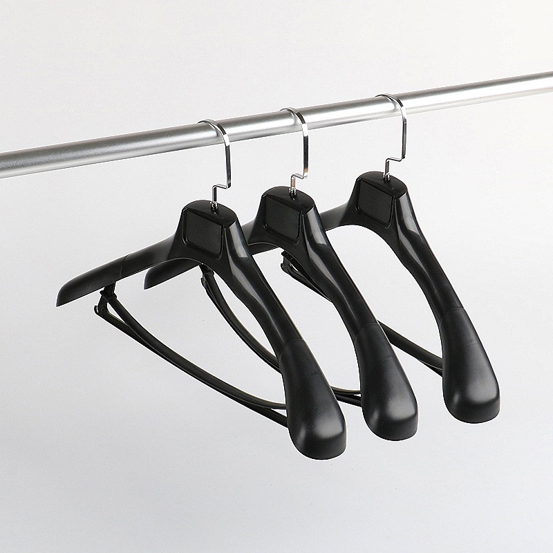 Фабрика одежды пластиковая вешалка с широким плечом магазин женской одежды поддержка одежды мужской костюм вешалка для одежды магазин химчистки Черная Вешалка Для Одежды Зажим для брюк