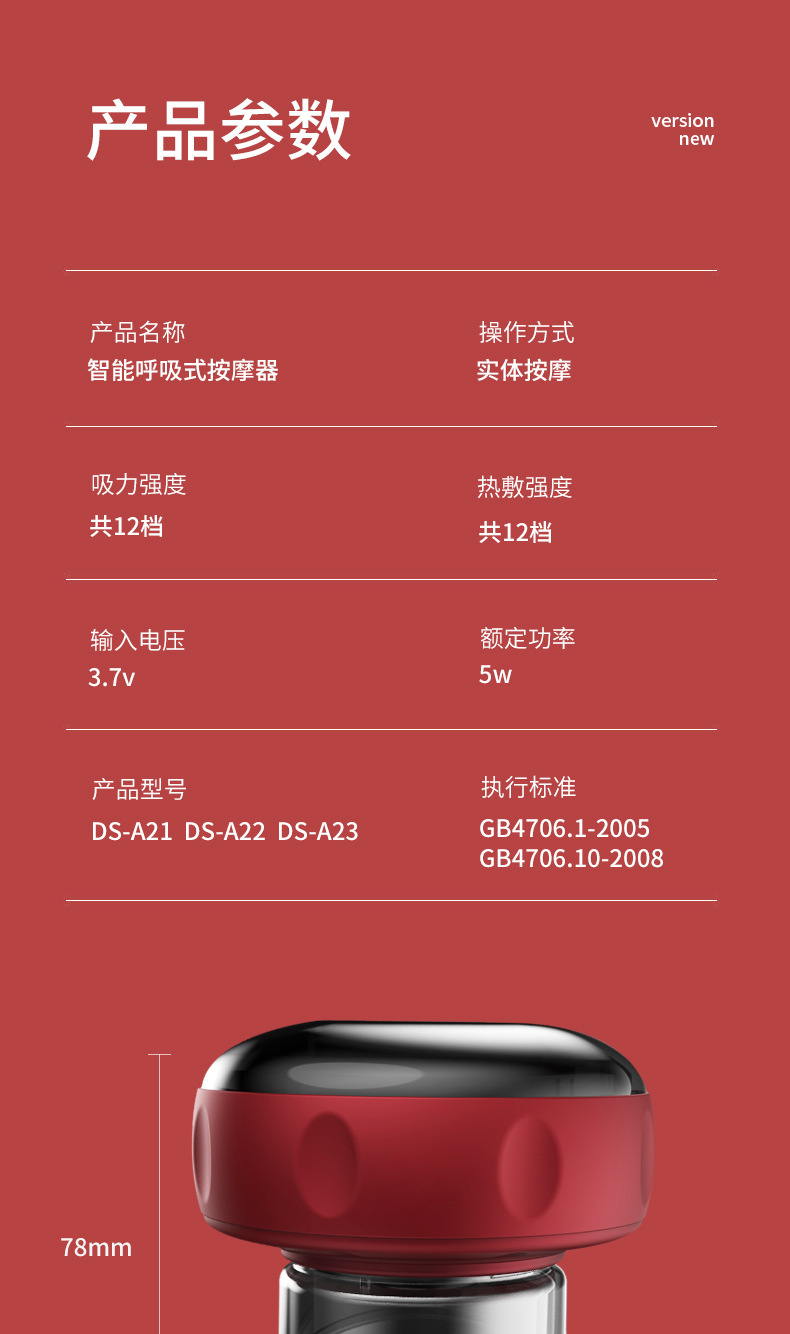 Весь корпус подходит для банок и всасывания, интеллектуальный дыхательный массажер с сильным и стабильным всасыванием. Устройство для дыхательного баночного массажа серии DS-A21.