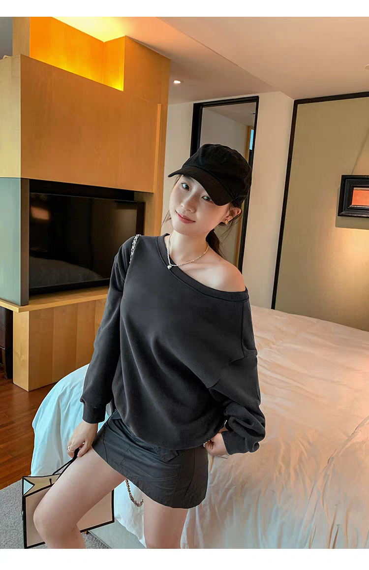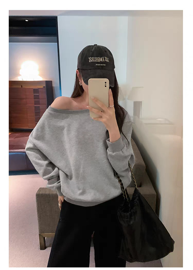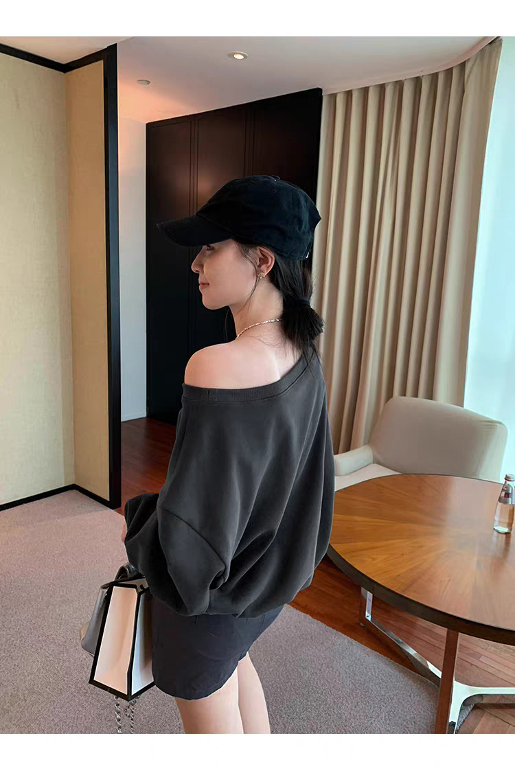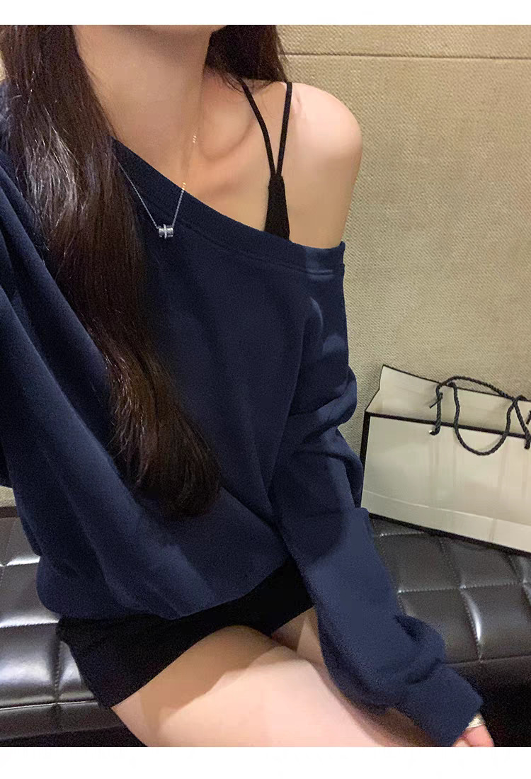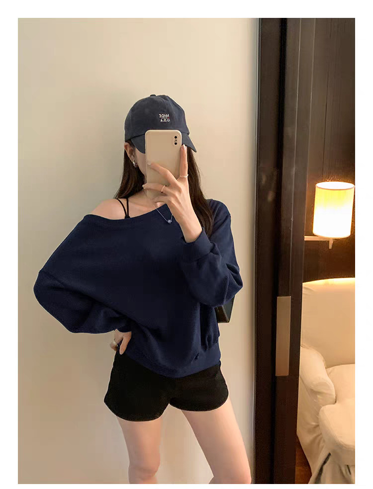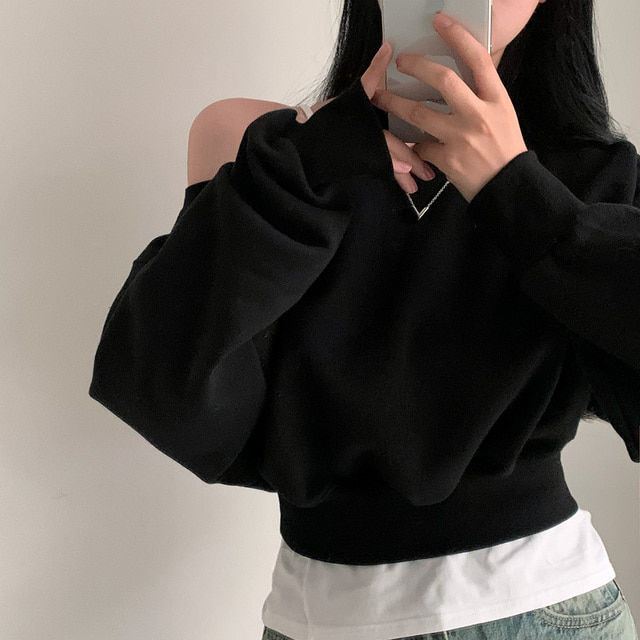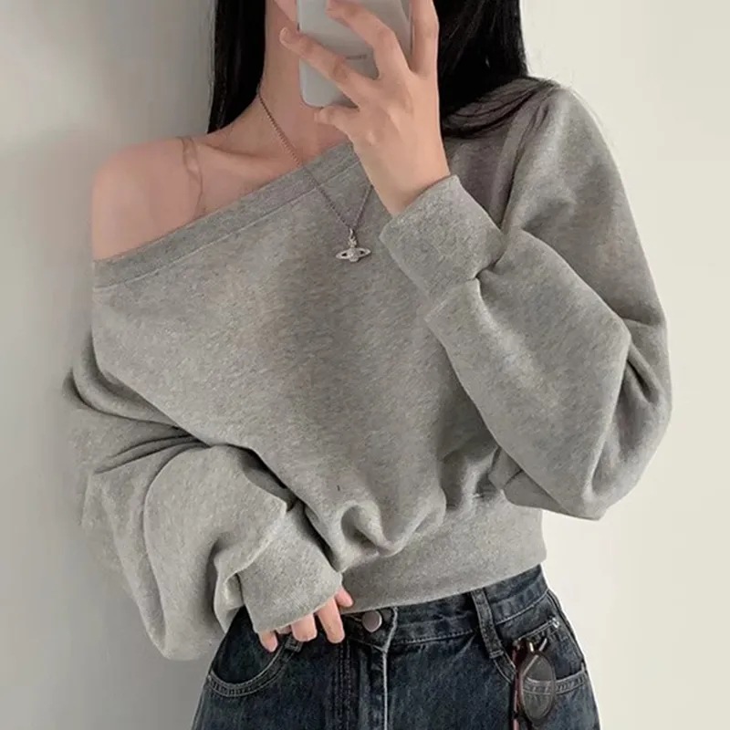 Южная Корея шикарный осенне-зимний нишевый темпераментный Свободный Повседневный Универсальный однотонный свитер с открытыми плечами и короткими длинными рукавами для женщин