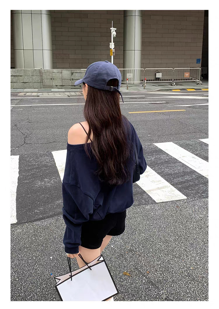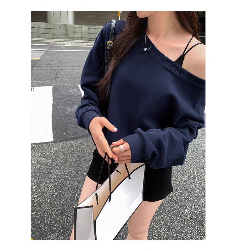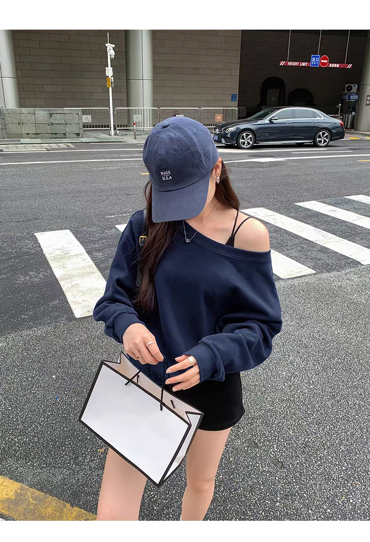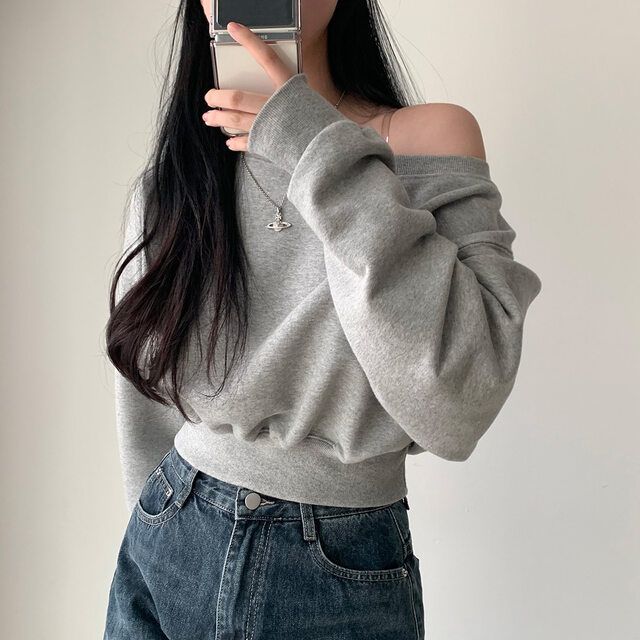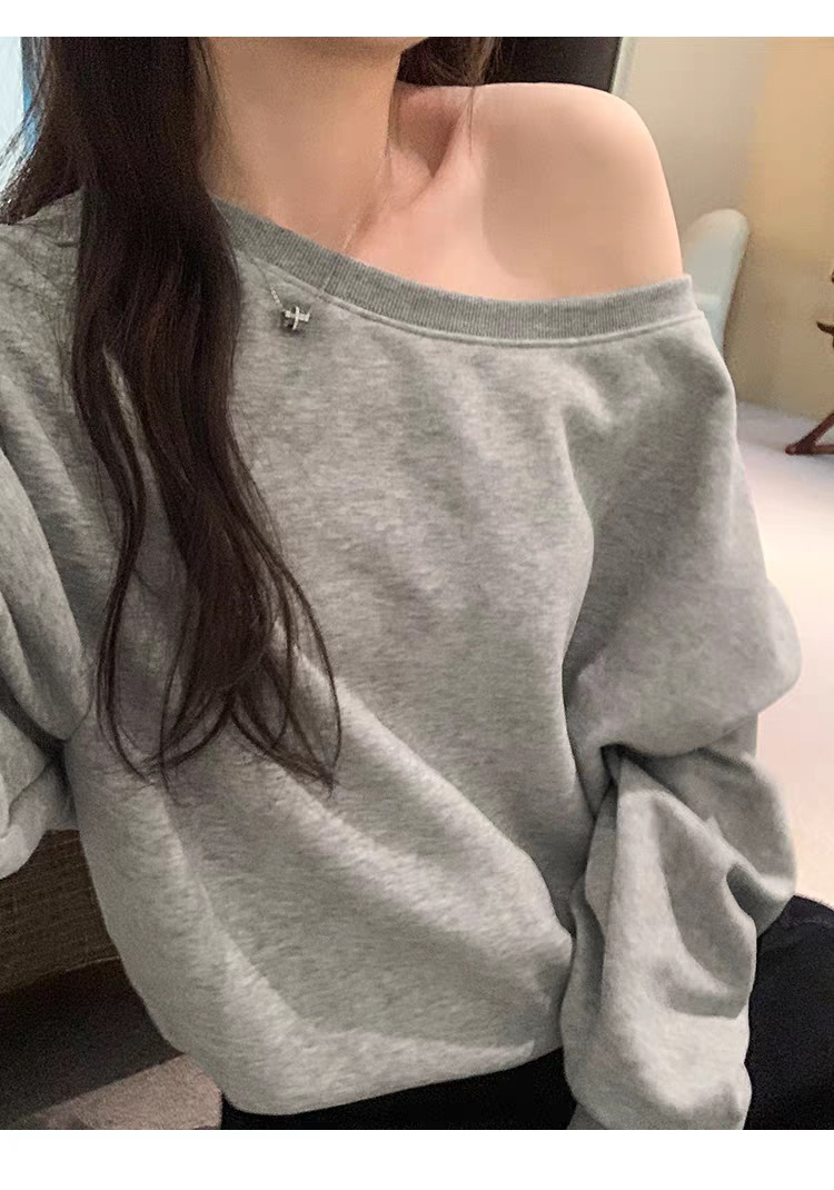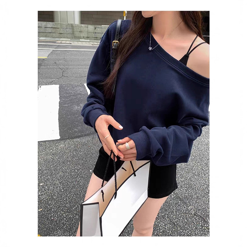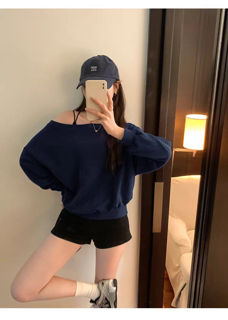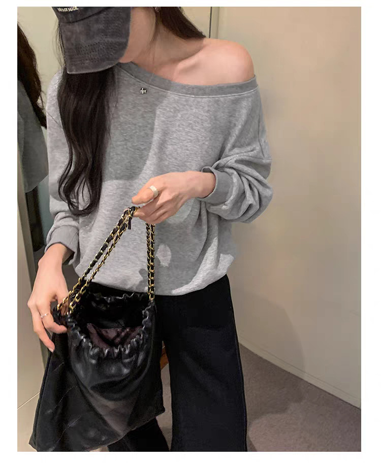 Южная Корея шикарный осенне-зимний нишевый темпераментный Свободный Повседневный Универсальный однотонный свитер с открытыми плечами и короткими длинными рукавами для женщин