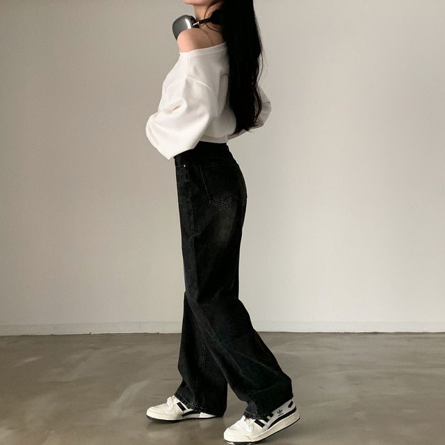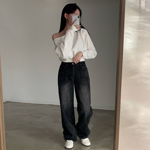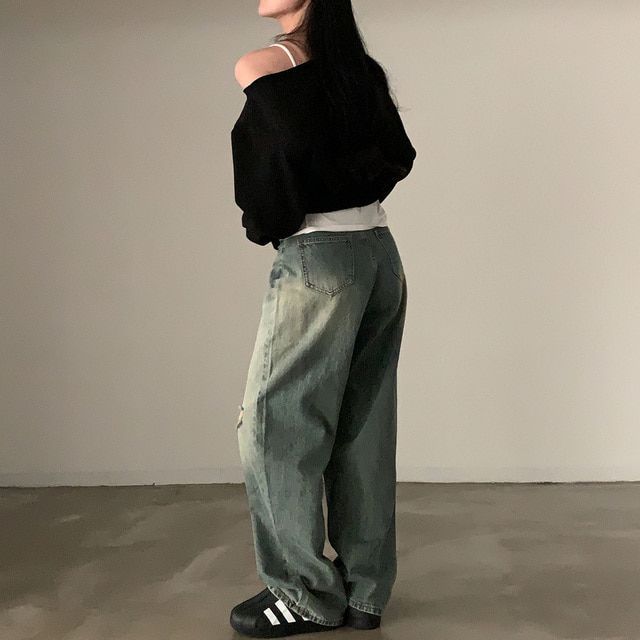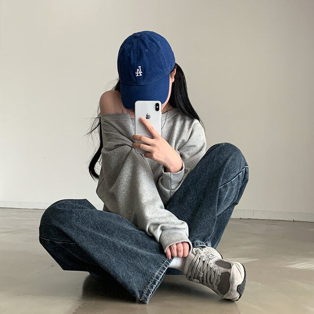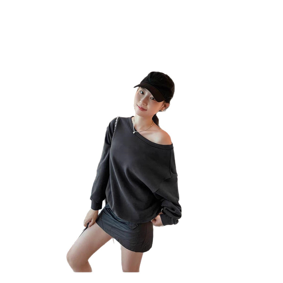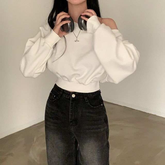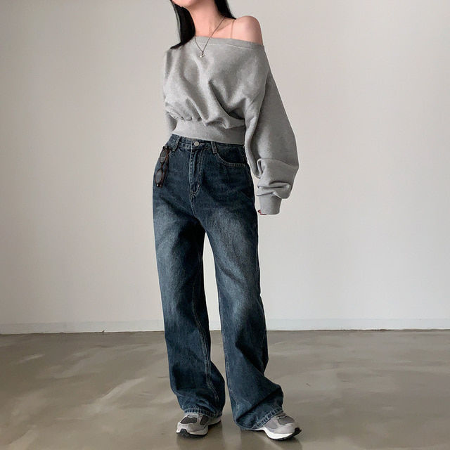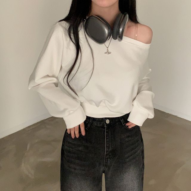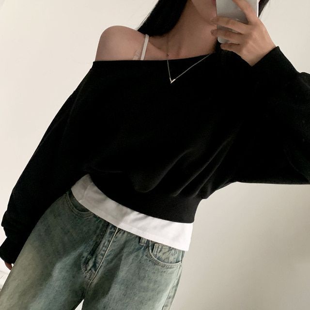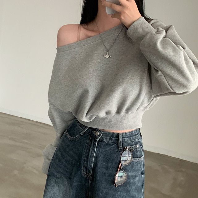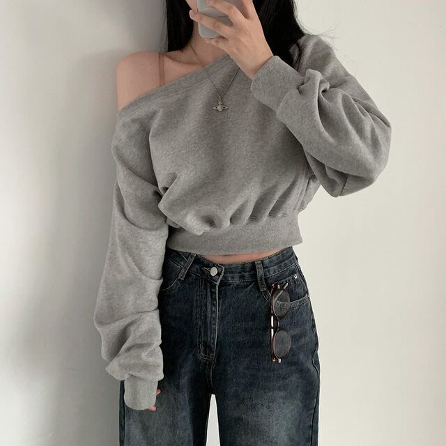 Южная Корея шикарный осенне-зимний нишевый темпераментный Свободный Повседневный Универсальный однотонный свитер с открытыми плечами и короткими длинными рукавами для женщин