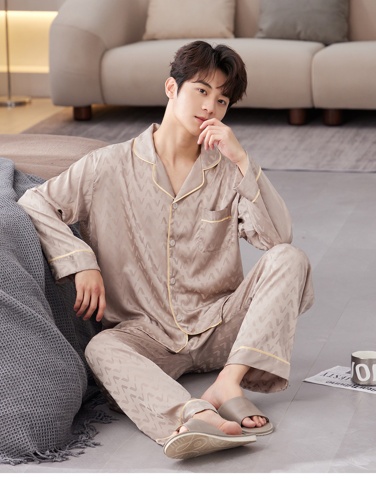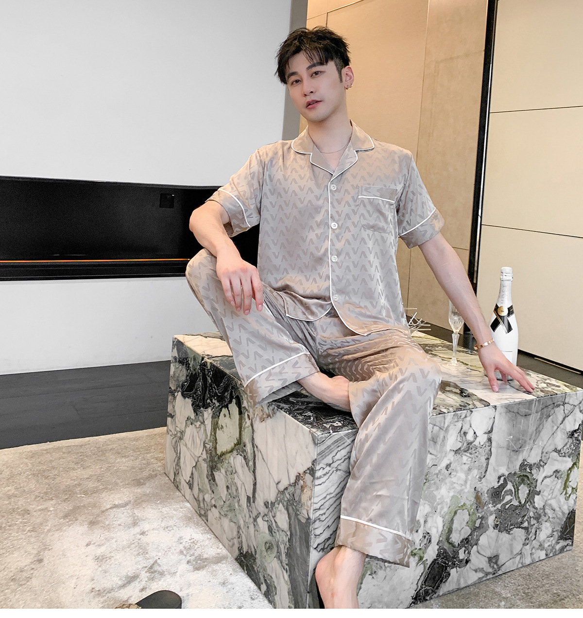 Весной и осенью дышащие пижамы из ледяного шелка, мужская летняя Тонкая Повседневная Домашняя одежда из искусственного шелка больших размеров
