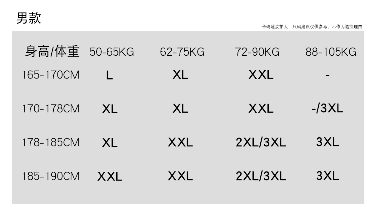 Л (в пределах 62.5kg ); XL (62.5-75kg ); 2XL (75-90kg ); 3XL (90-105kg )
