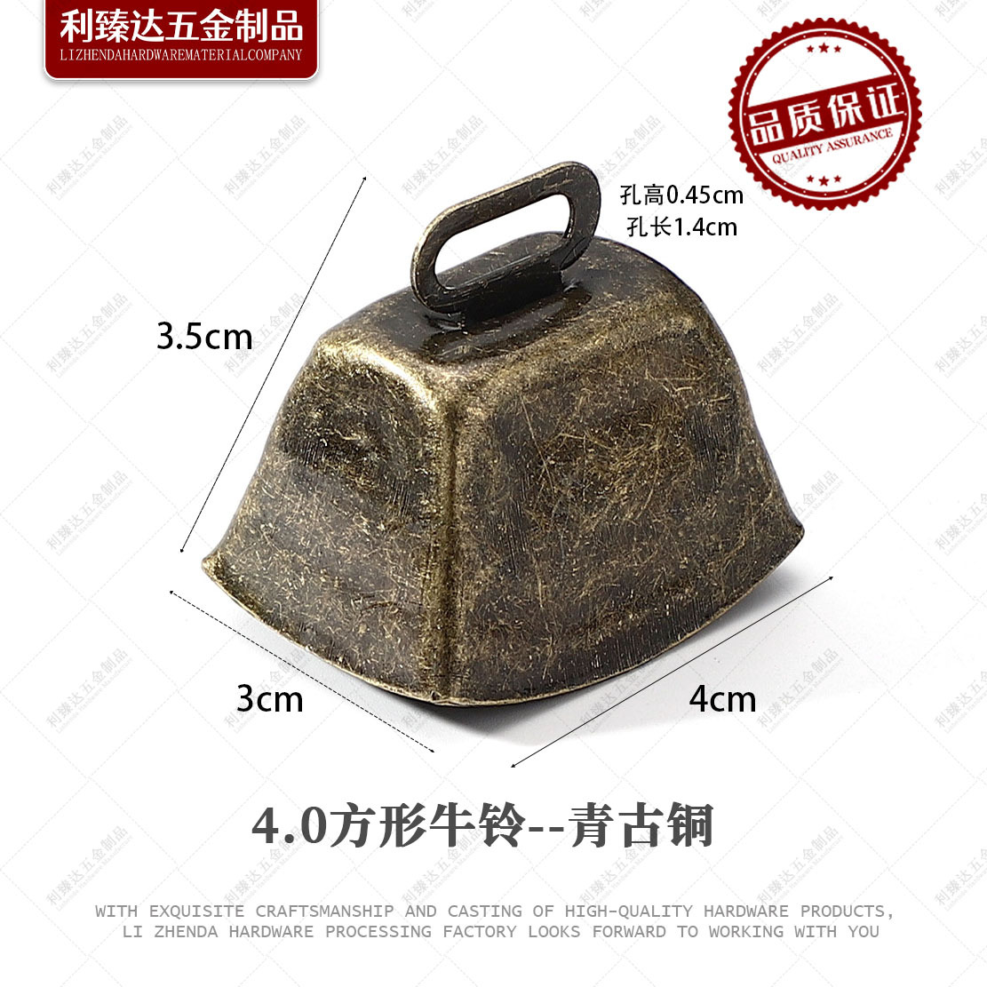 Квадратный колокольчик 4,0*3,0*3,5 см-бронза