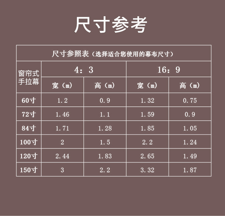 60 дюймов 72 дюйма 84 дюйма 100 дюймов 120 дюймов