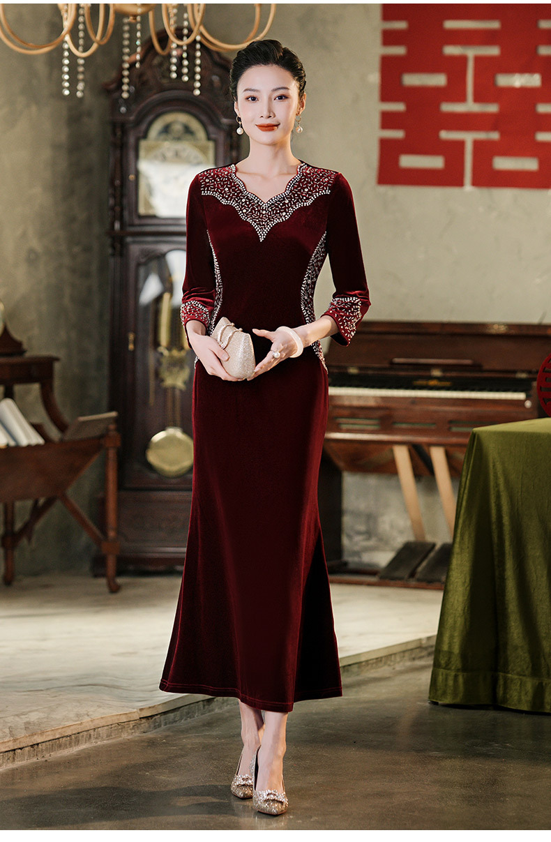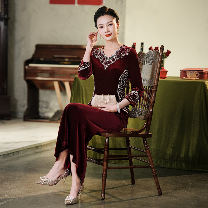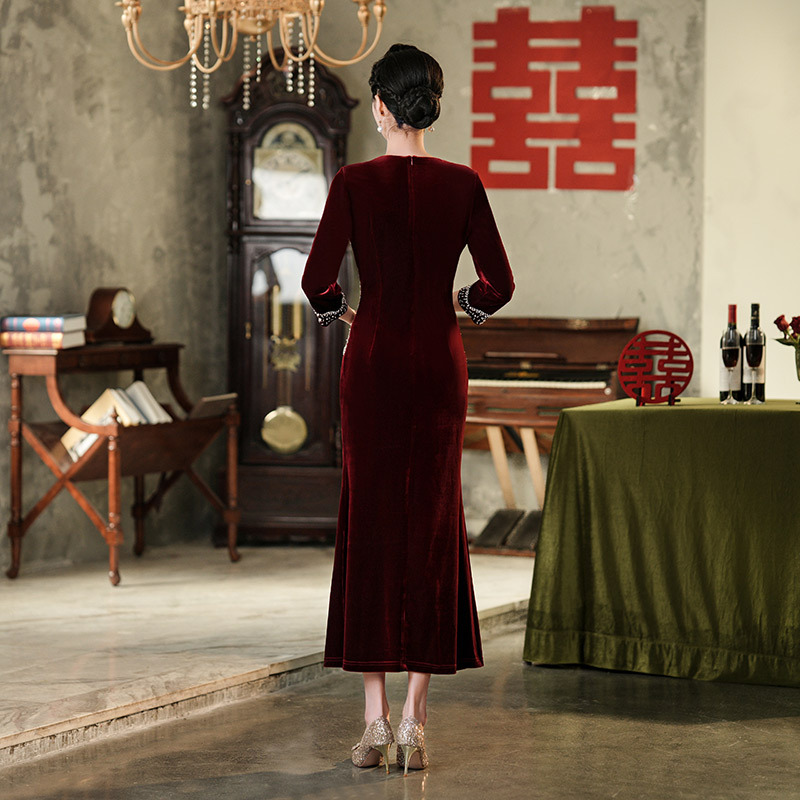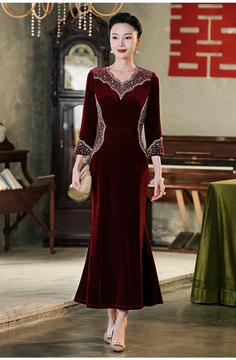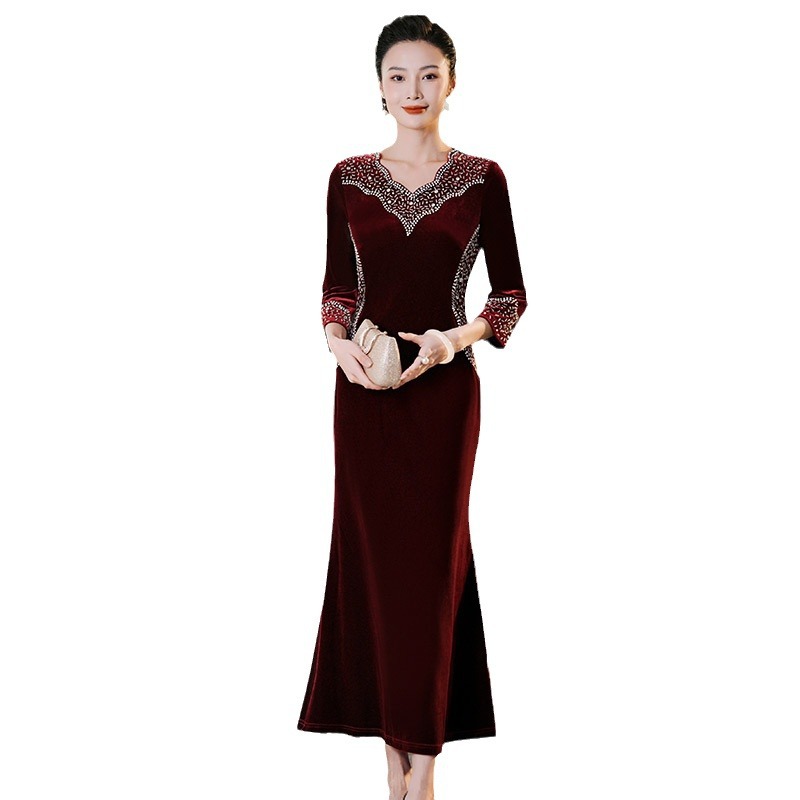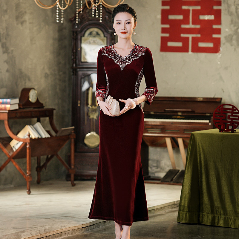 Прямая поставка с фабрики свадебное платье для мамы платье с рыбьим хвостом 2024 Весна Новый Чонсам для счастливой свекрови среднего возраста больших размеров