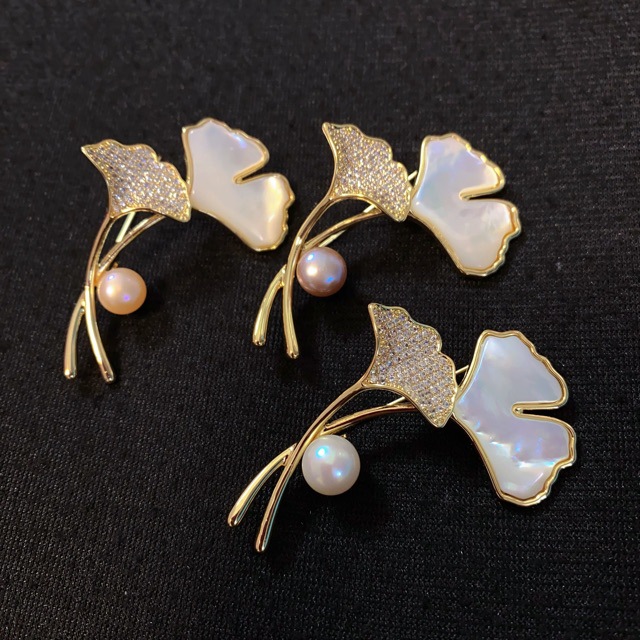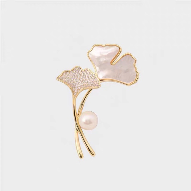 Гинкго билоба брошь высокого класса натуральный пресноводный жемчуг нишу одежда костюм булавка женская грудинка подарок маме подарок