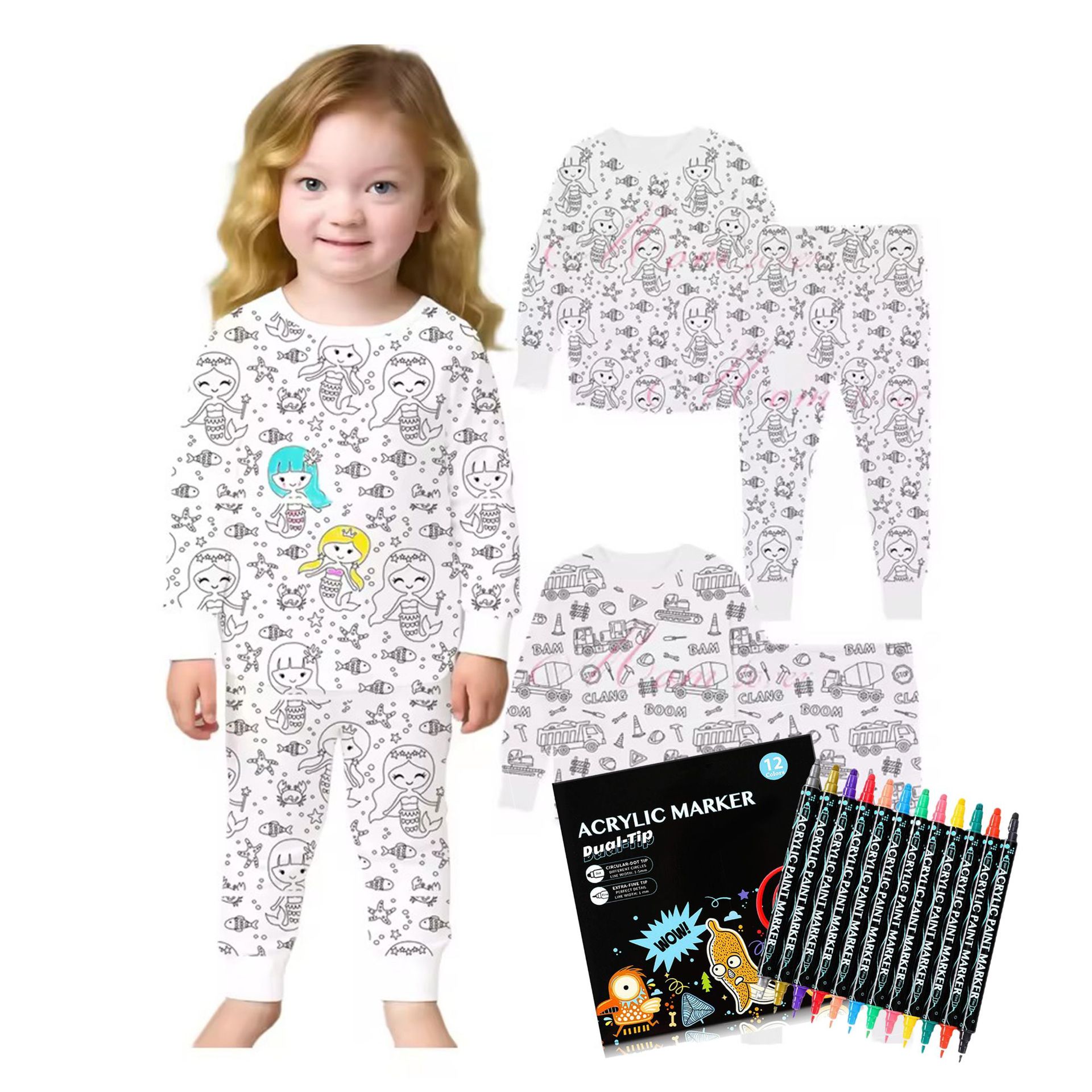 Трансграничные детские пижамы с граффити костюм цвет DIY Детские хлопковые раскраски пижамные наборы