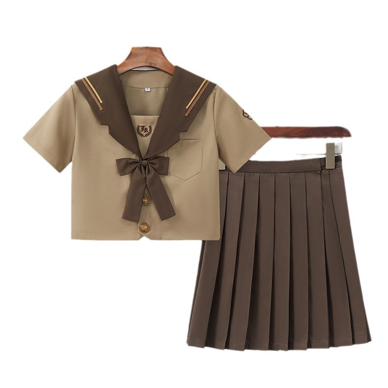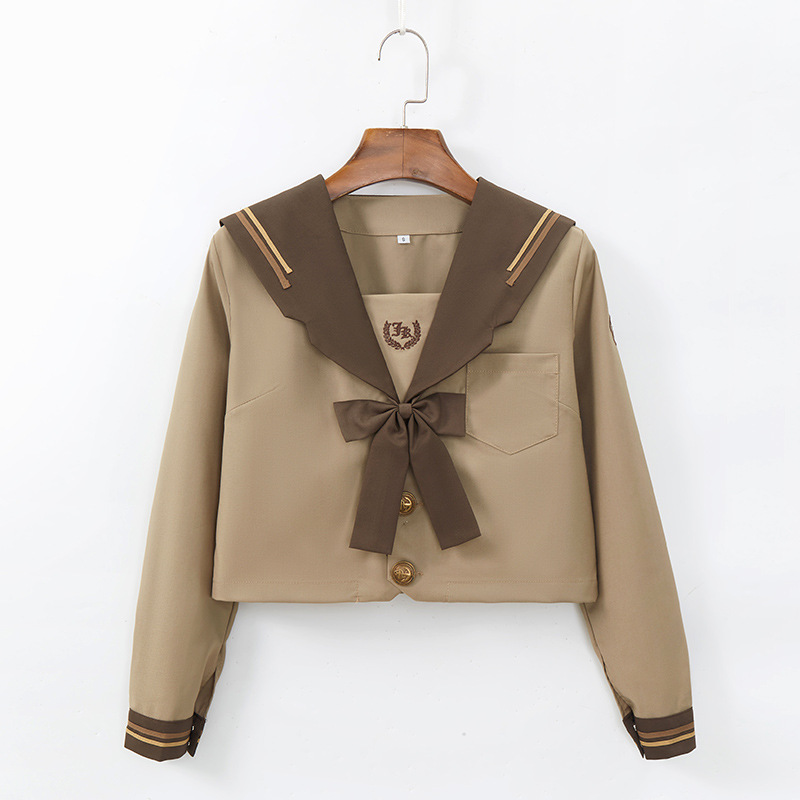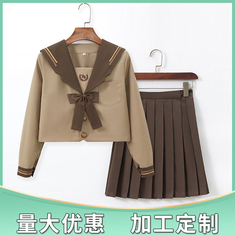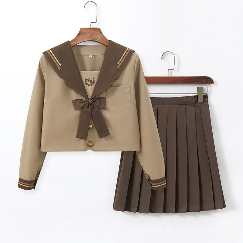 Униформа JK в японском стиле, молочный чай, коричневый академический православный мягкий костюм для девочек, вышитый матросский костюм, плиссированная юбка, студенческий наряд