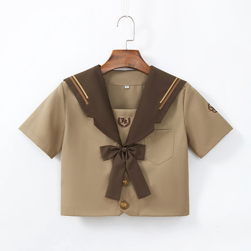 Костюм с длинными рукавами (коричневый галстук-бабочка с молоком в подарок); Костюм с короткими рукавами (коричневый галстук-бабочка с молочным чаем бесплатно); Длинный рукав (молочный чай, коричневый галстук-бабочка); Короткий рукав (коричневый галстук-бабочка с молоком бесплатно); Короткая юбка 45 см