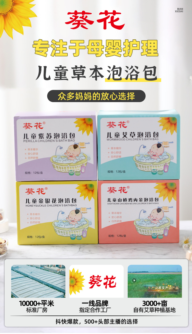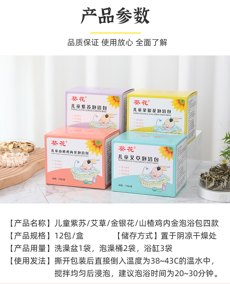 Детская сумка для ванной из полыни подсолнечника [12 пакетиков/коробка]; Подсолнечник Детская Перилла ванной мешок [12 мешков/коробка]; Детская банная сумка для жимолости подсолнуха [12 пакетиков/коробка]; Детская пена для ванны с курицей-боярышником из подсолнечника [12 пакетов/коробка]