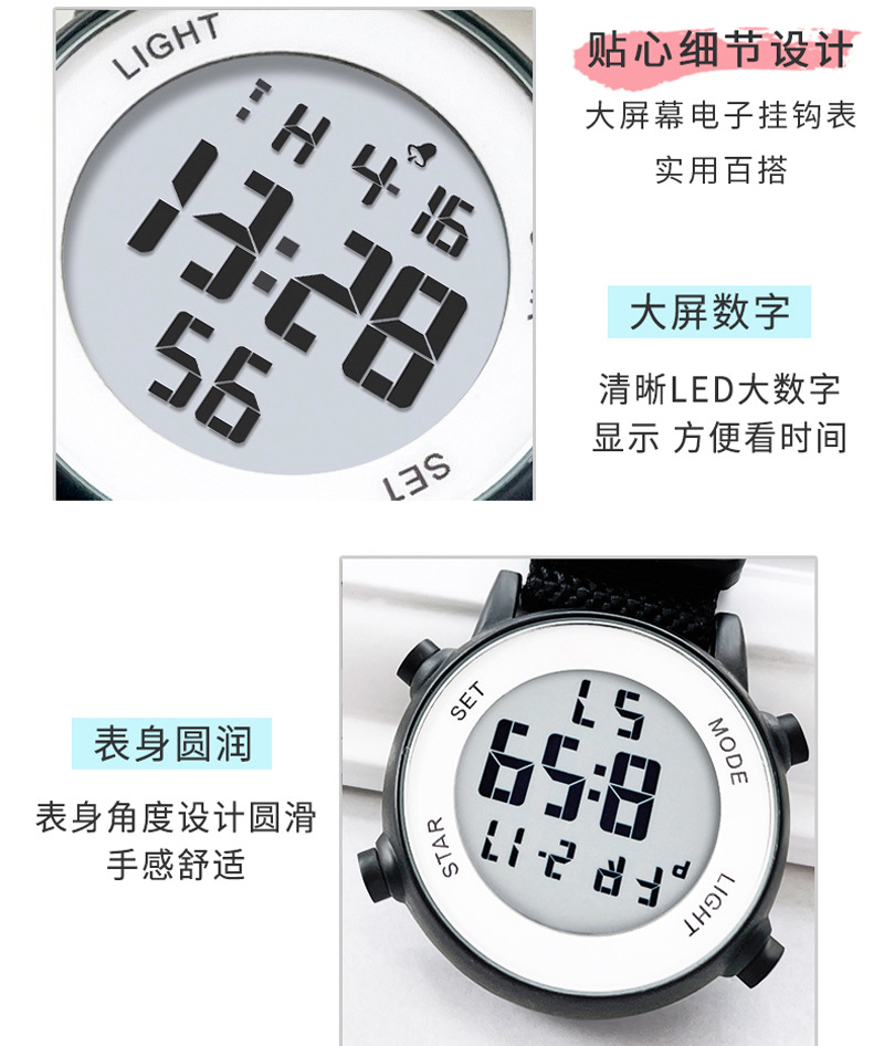 Электронные часы-карабин для рюкзака, карманные часы для студентов и пожилых людей, светящиеся часы-будильник, большие цифровые часы для походов