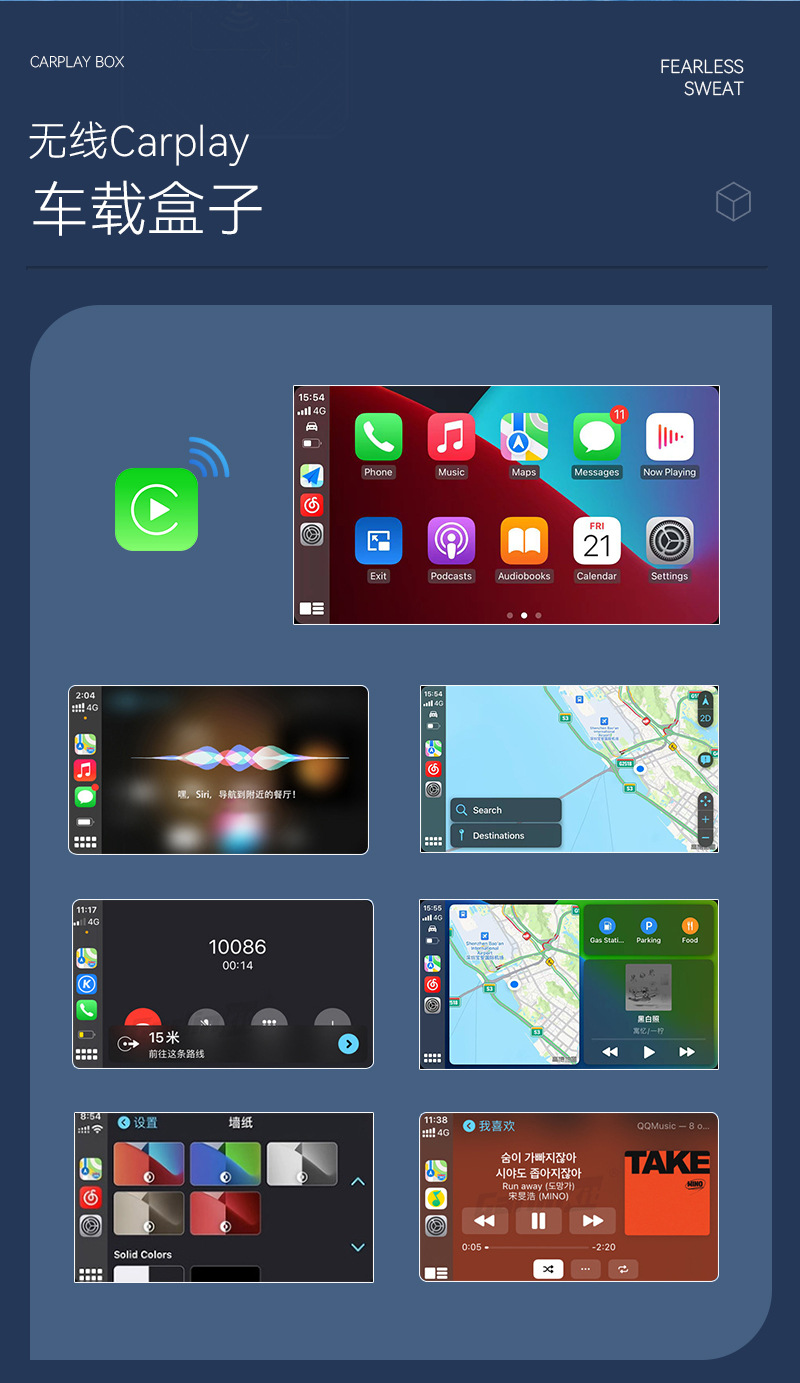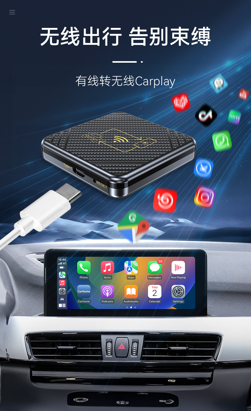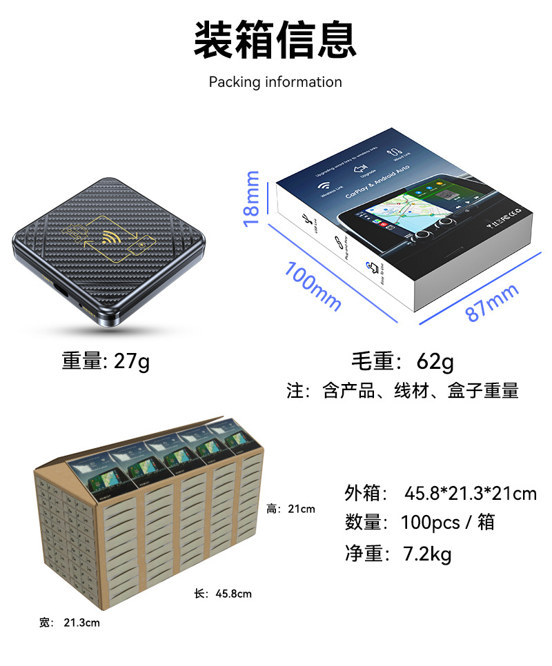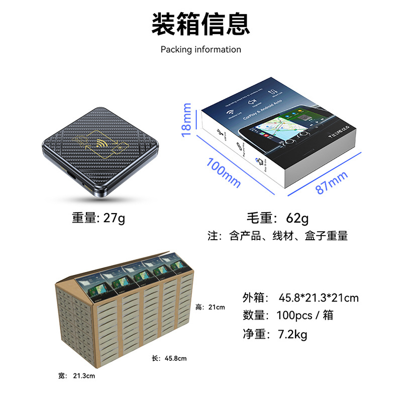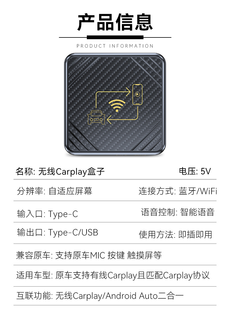 Беспроводная связь Carplay plus Android Auto 2-в-1 (золотая шелковая ширма) подходит только для зарубежных систем; Беспроводная связь Carplay plus Android Auto 2-в-1 (белый шелкографический экран) подходит только для зарубежных систем