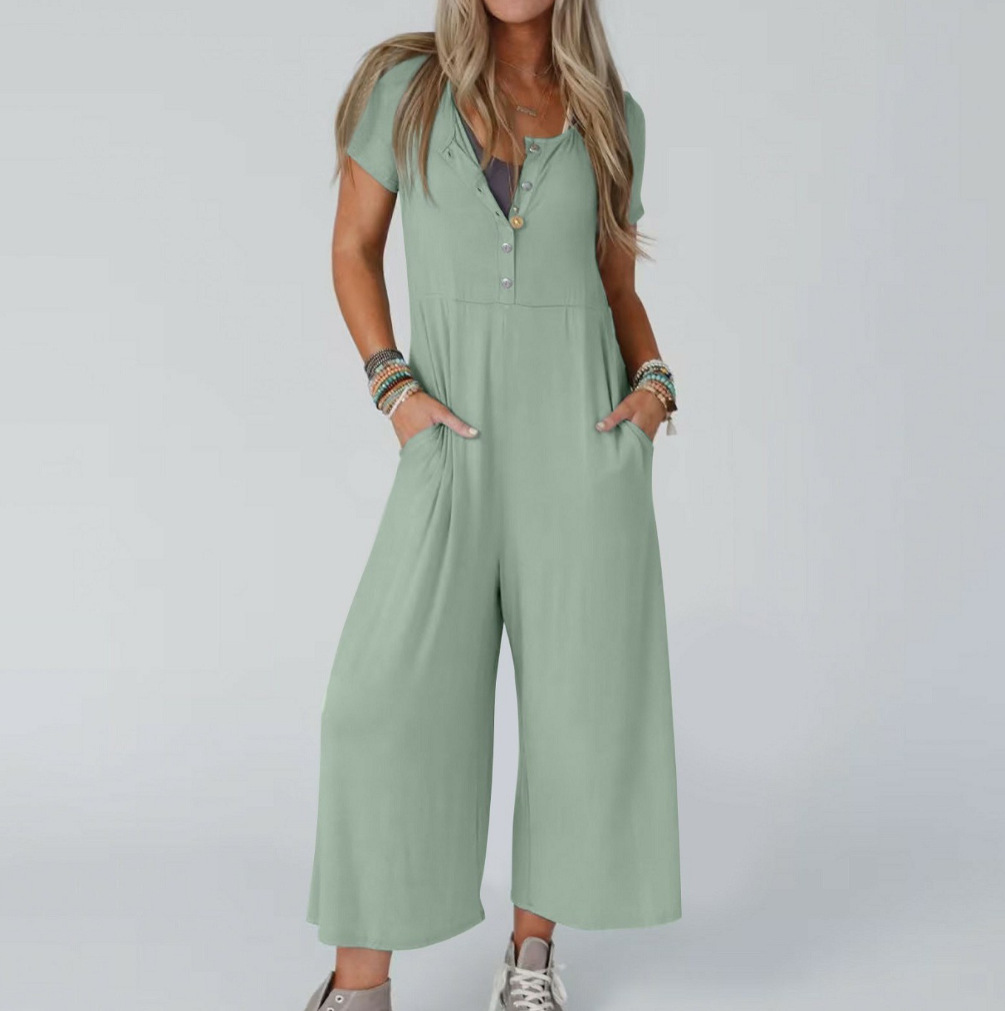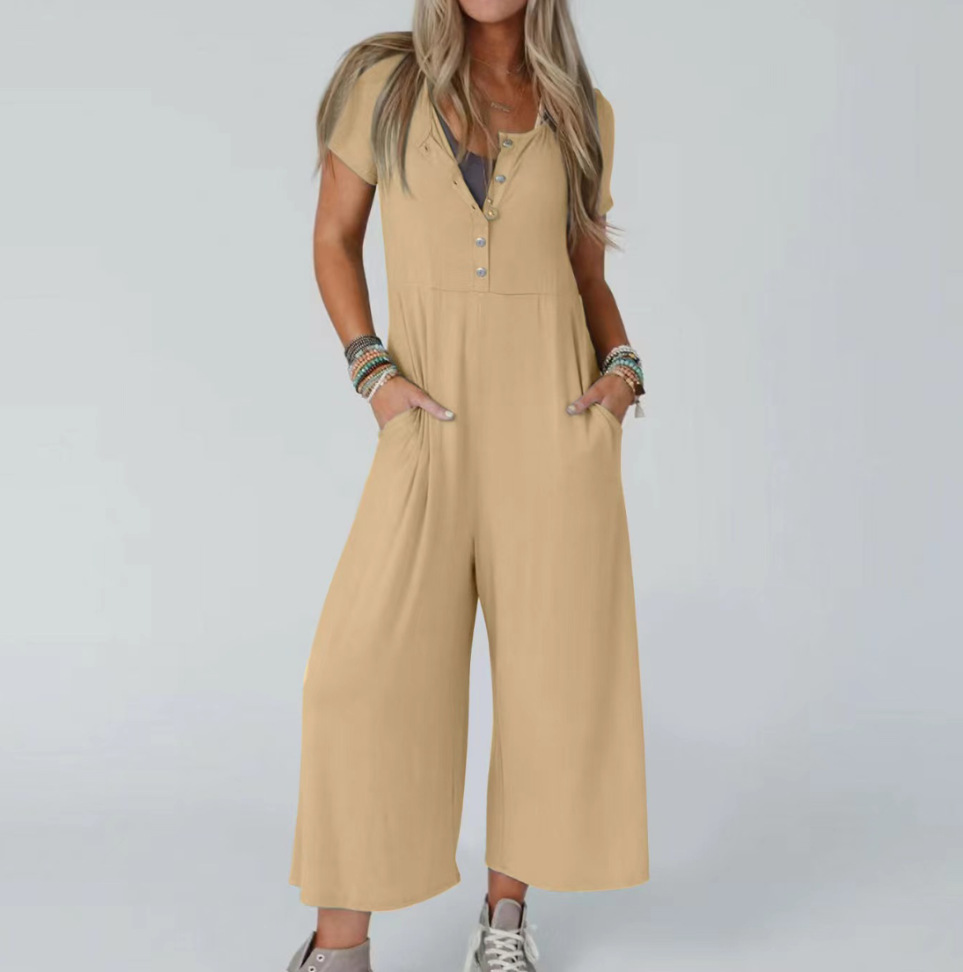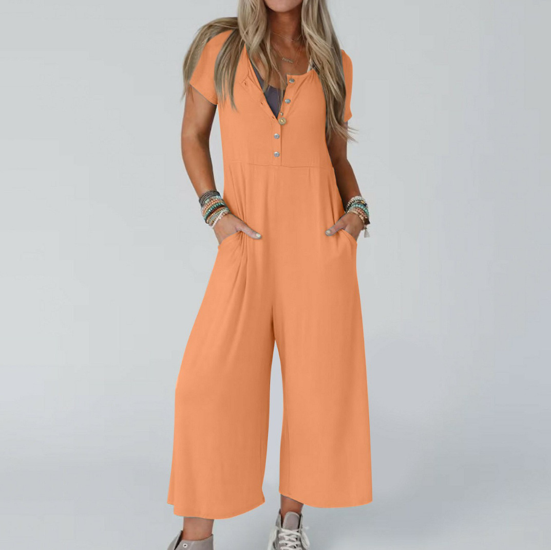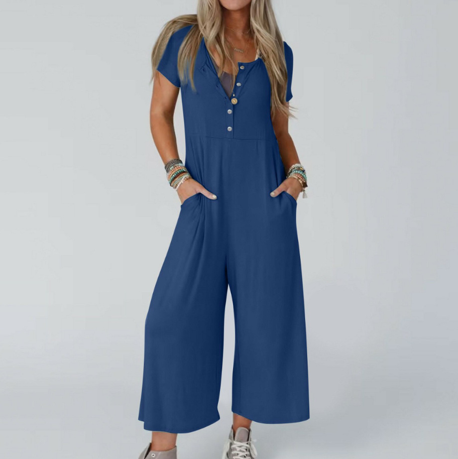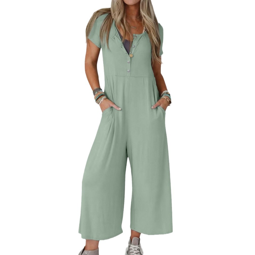 Spot 2024 Amazon ebay Независимая станция wish Европейские и американские женщины с короткими рукавами сплошной цвет повседневные широкие ножки комбинезоны