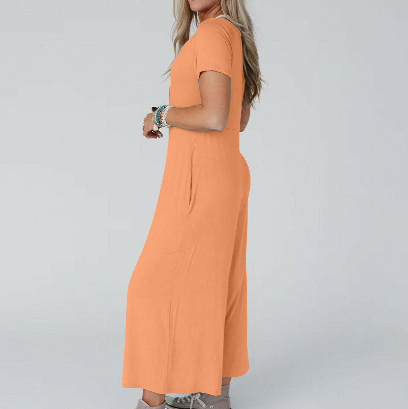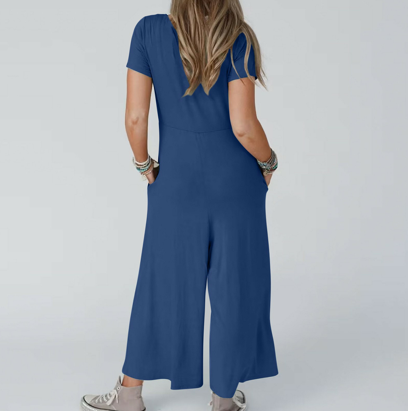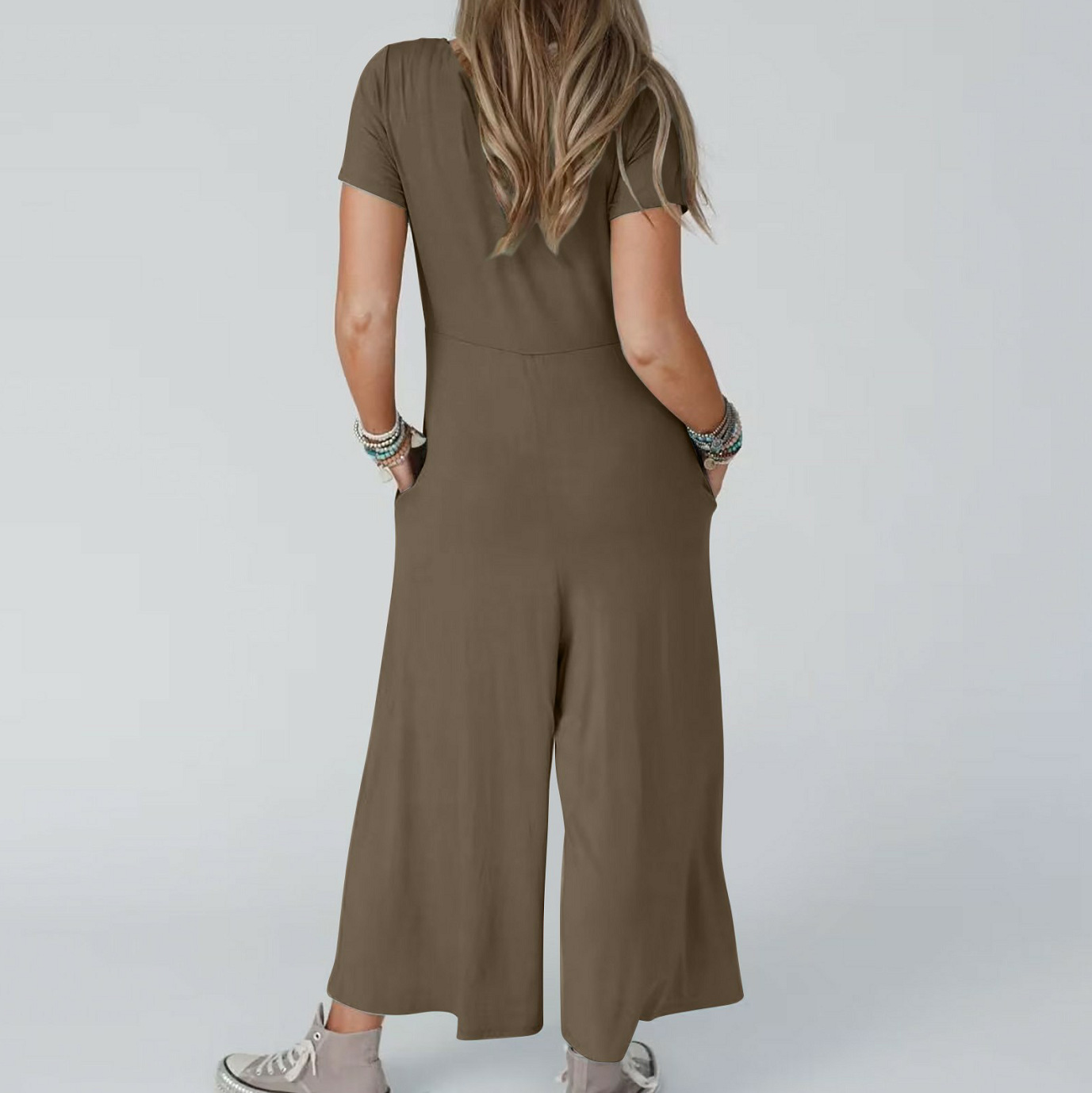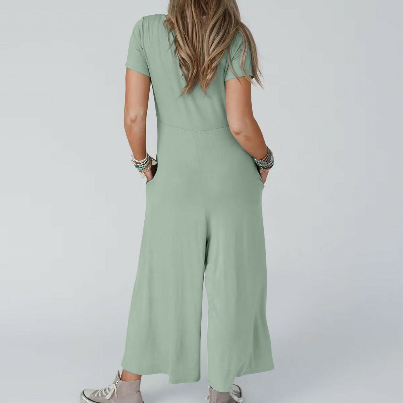 Spot 2024 Amazon ebay Независимая станция wish Европейские и американские женщины с короткими рукавами сплошной цвет повседневные широкие ножки комбинезоны