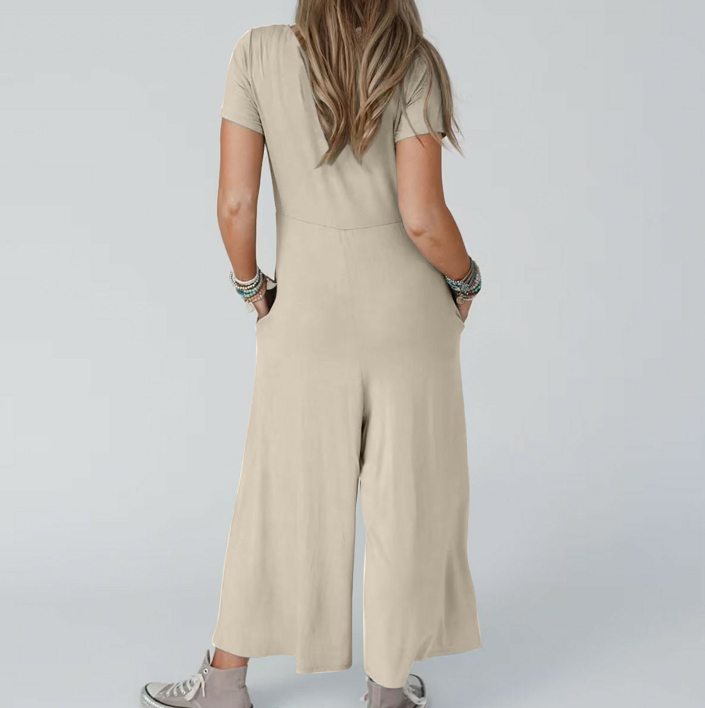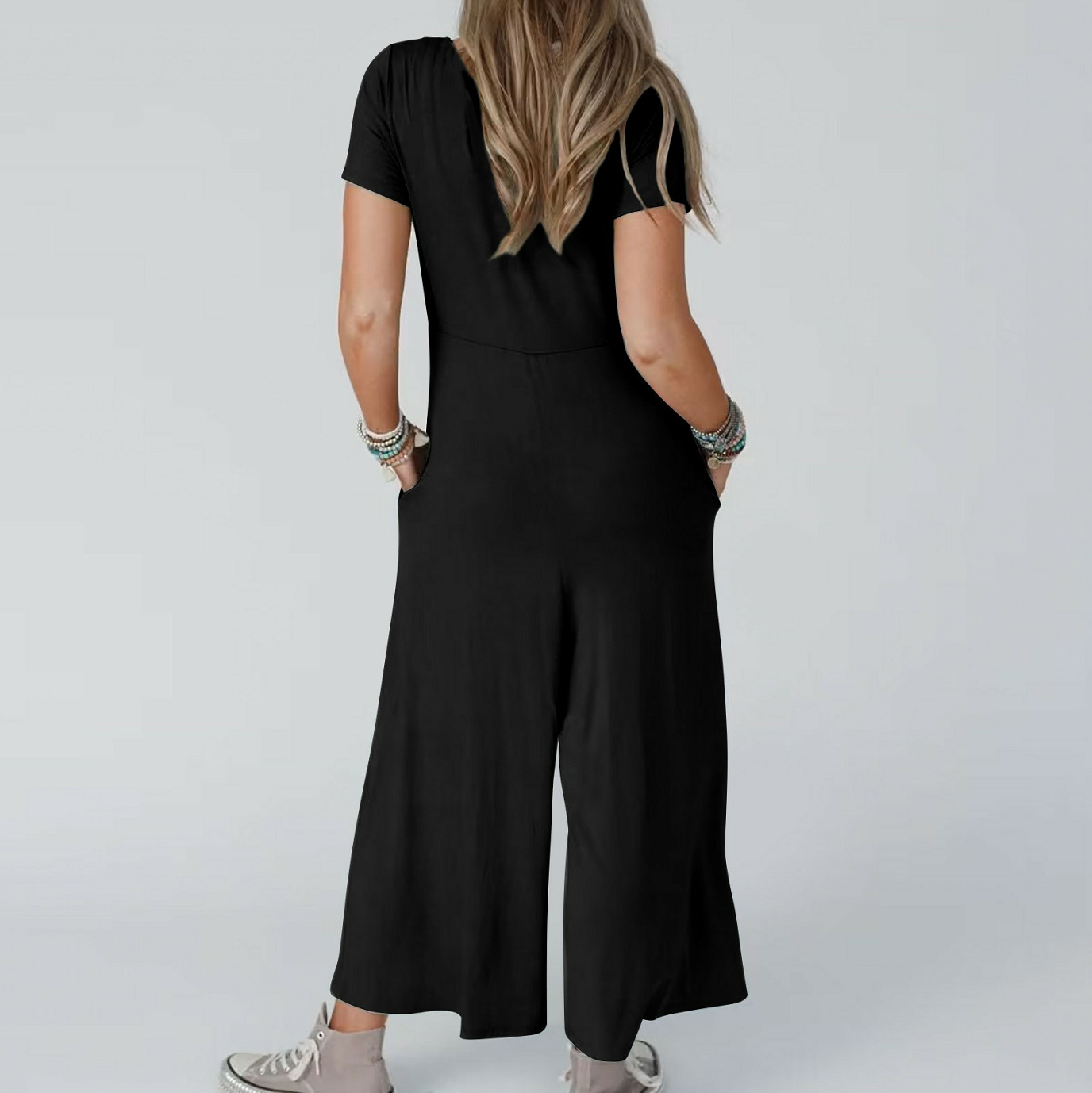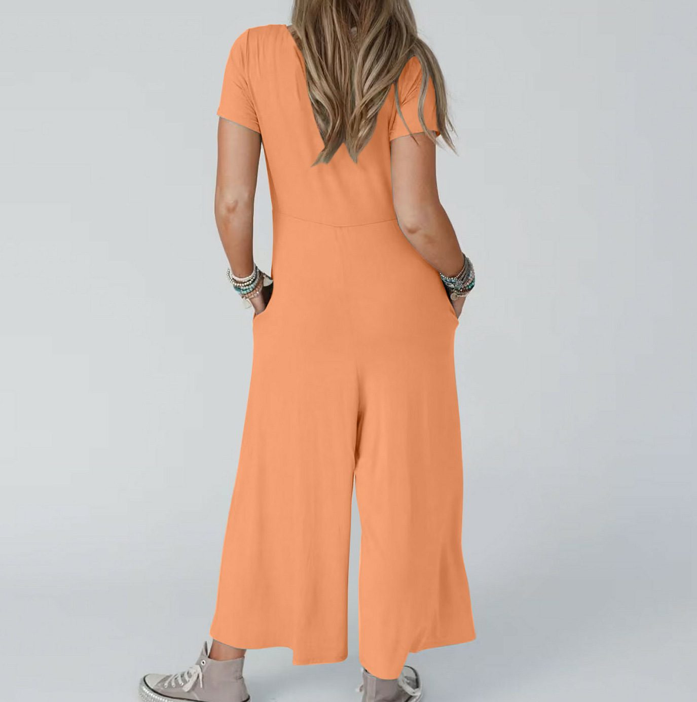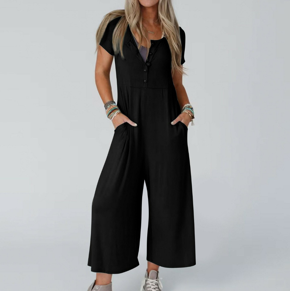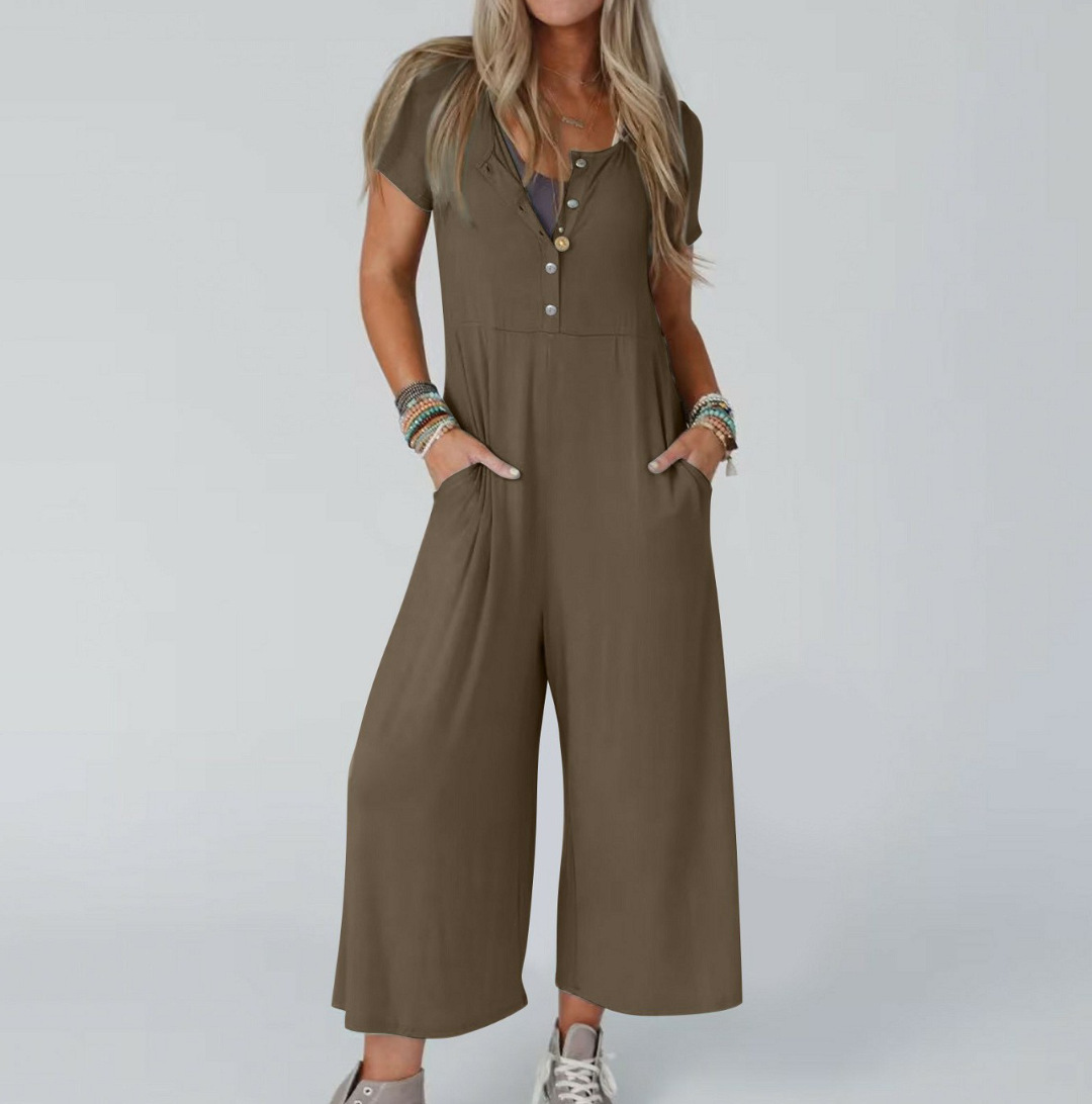 Spot 2024 Amazon ebay Независимая станция wish Европейские и американские женщины с короткими рукавами сплошной цвет повседневные широкие ножки комбинезоны