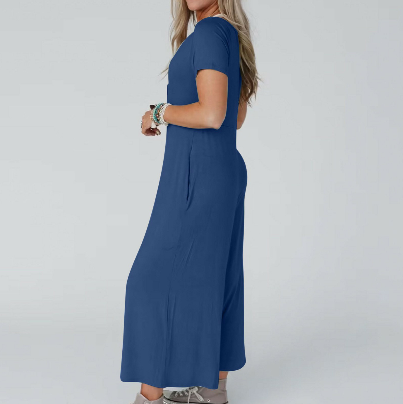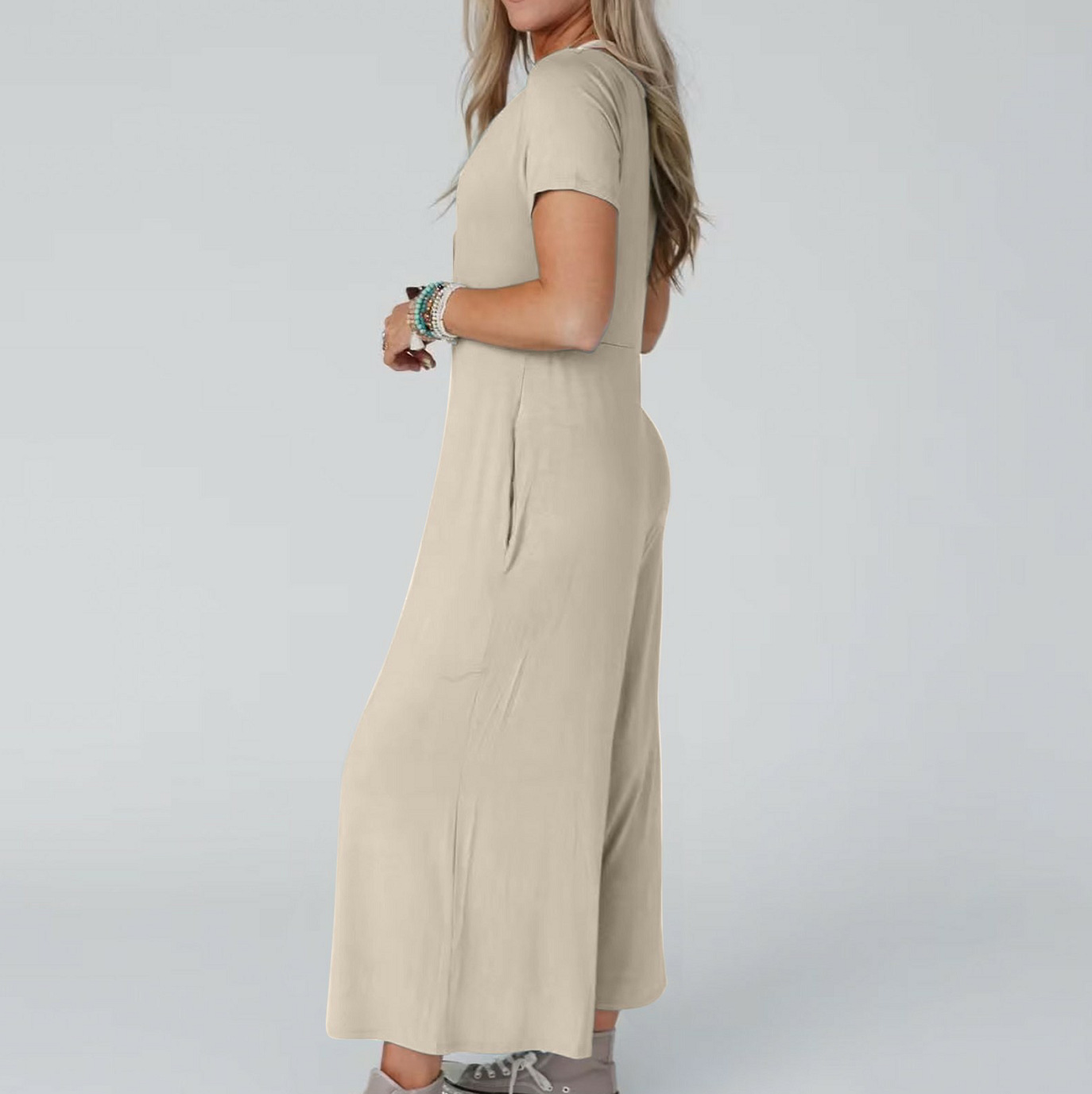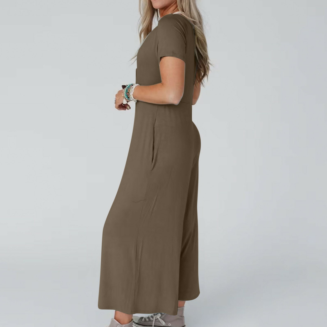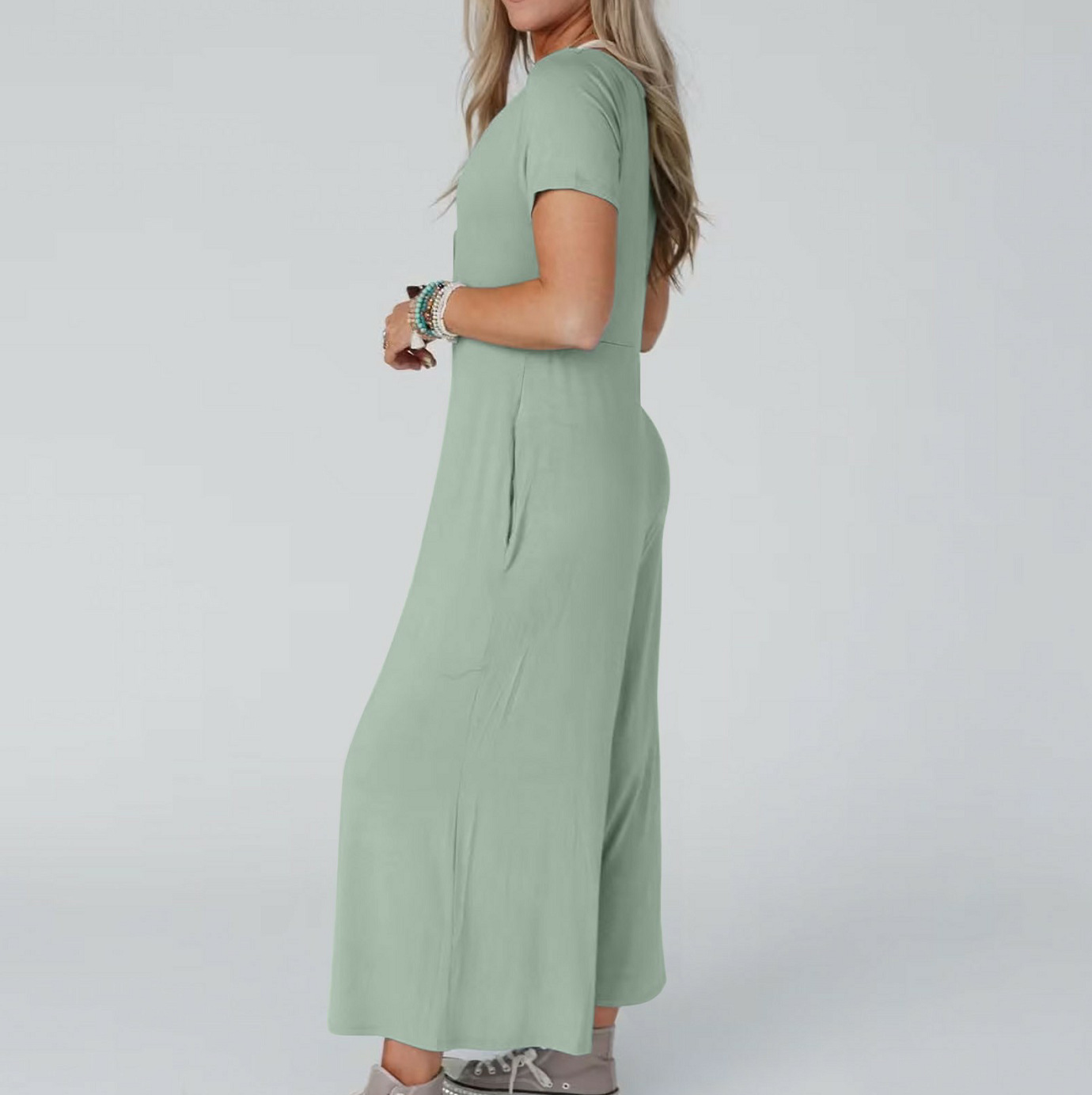 Spot 2024 Amazon ebay Независимая станция wish Европейские и американские женщины с короткими рукавами сплошной цвет повседневные широкие ножки комбинезоны