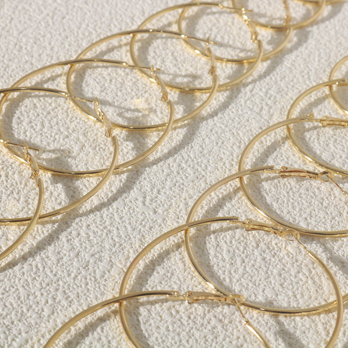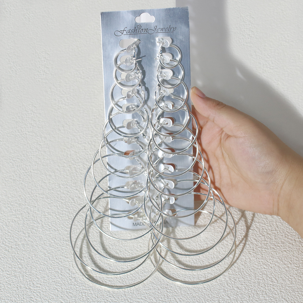 Европейская и американская индивидуальность преувеличена трансграничными новыми креативными Ретро универсальными 12 парами металлических глянцевых больших круглых серег