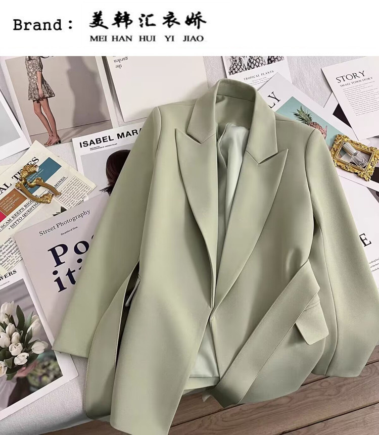 Женский пиджак на шнуровке, осень 2021, новый дизайн, элегантный корейский стиль, повседневный модный зеленый костюм для женщин