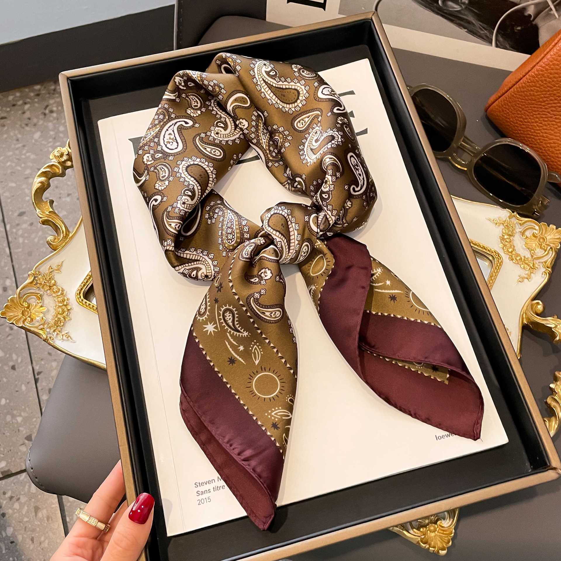 Новый шелковый шарф, женский модный Универсальный Высококачественный маленький квадратный шарф, шейный шарф в Корейском стиле, весенне-осенний ретро-шарф, сумка для галстука