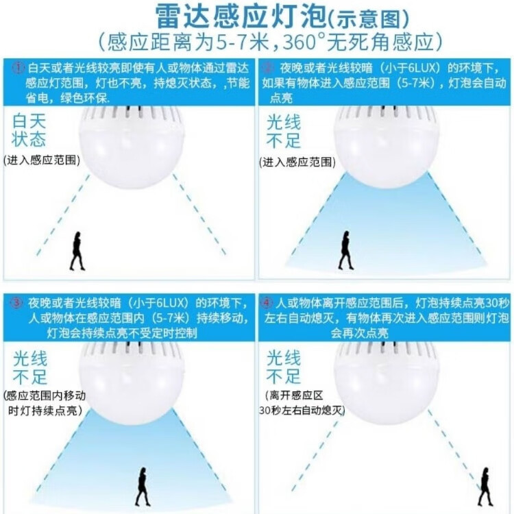 Радарный датчик мощностью 5 Вт, белый свет, головка E27; Радарный датчик мощностью 7 Вт, белый свет, головка E27; Радарный датчик 15 Вт, белый свет, головка E27; 5 Вт управление звуком и светом белый свет головка E27; 7 Вт управление звуком и светом белый свет E27 головка