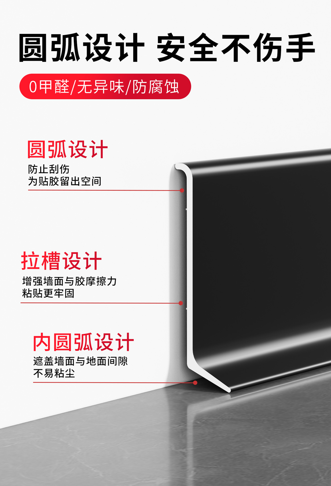 Самоклеящийся плинтал из алюминиевого сплава 4 см Ультратонкий и очень узкий 6 см