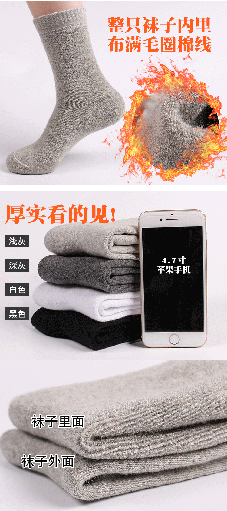 Зимние шерстяные носки, мужские утолщенные чулки, осенне-зимние мужские теплые носки-полотенца до середины икры, Длинные махровые носки на флисовой подкладке