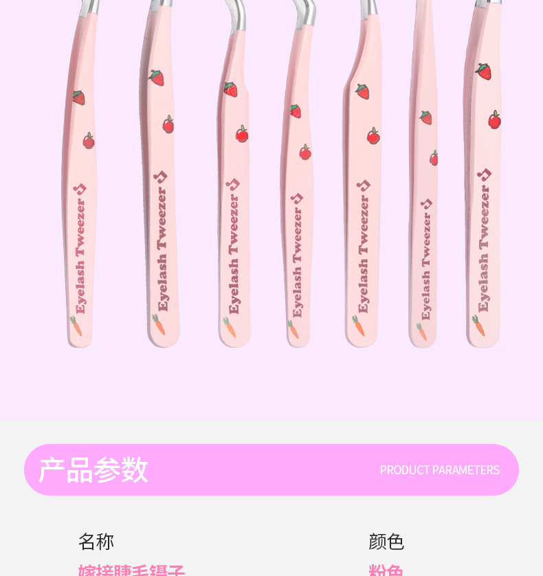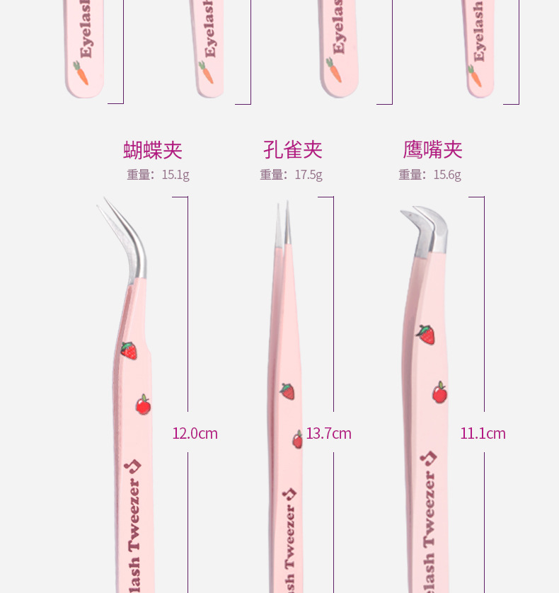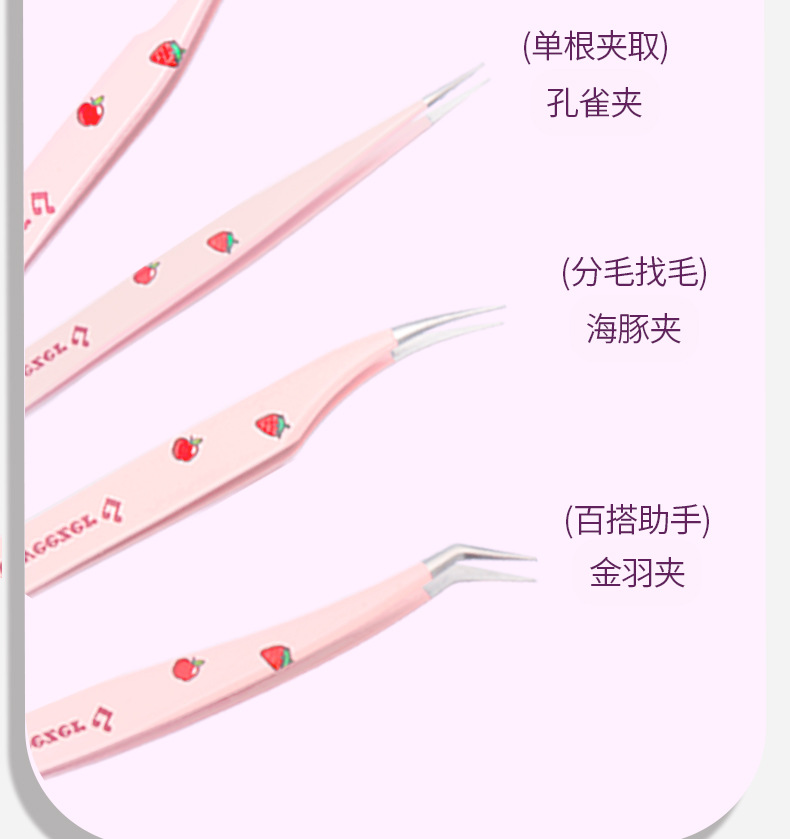 Пинцет для ресниц 1,2 мм клубнично-розового цвета