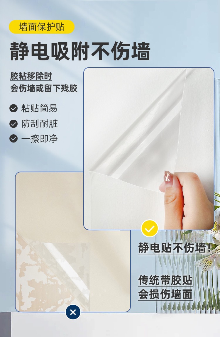 Маленький рулон, оптовая продажа, защитная пленка для стен, электростатическая латексная краска, прозрачная, не повреждает стену, грязеотталкивающие белые обои, настенная наклейка, пленка