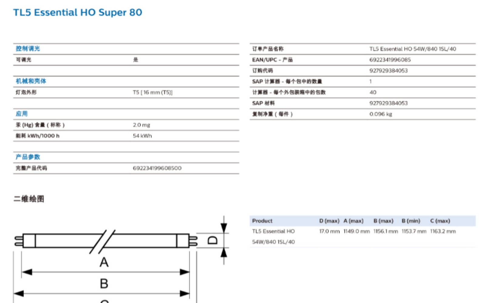 TL5 14W/830 0.6M; TL5 14W/840 0.6M; TL5 14W/865 0.6M