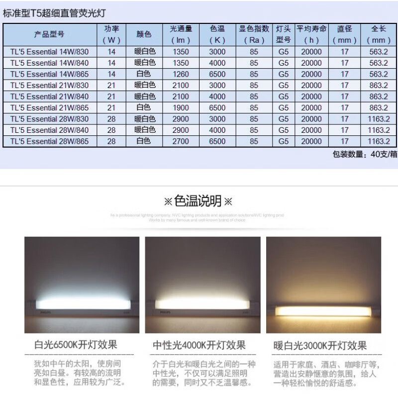 TL5 Philips T5 трехцветная люминесцентная лампа TL5 14W/830/840/865 0.6m T5 люминесцентная лампа G5